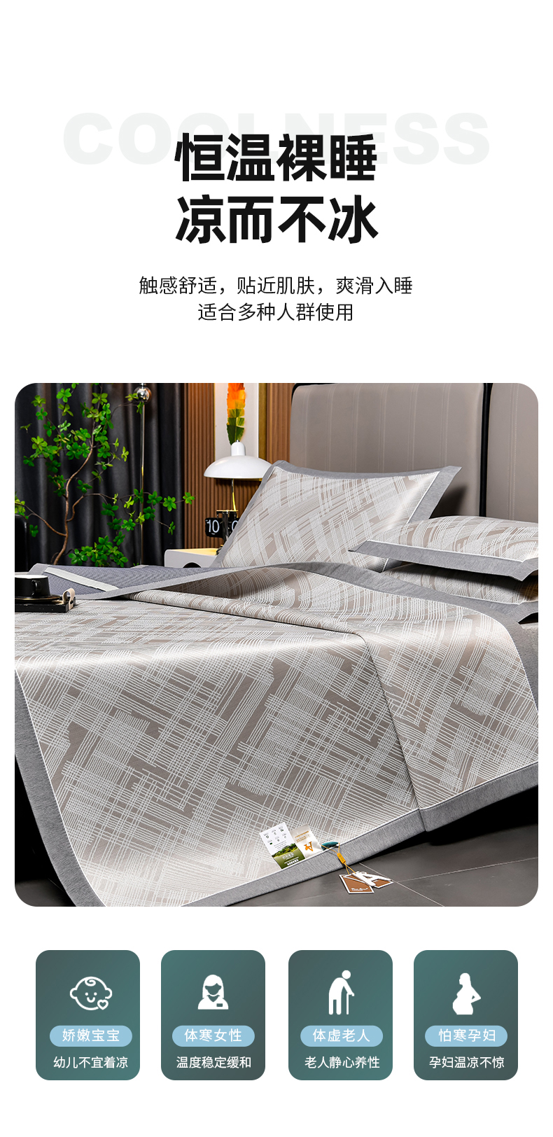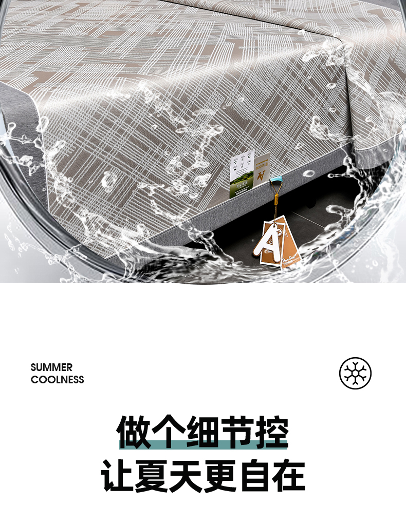 商品名称:小牛席业 2025新款简单生活-清凉冰丝席系列凉席藤席冰藤席冰丝席竹席空调席草席乳胶席豆豆席三件套 香槟