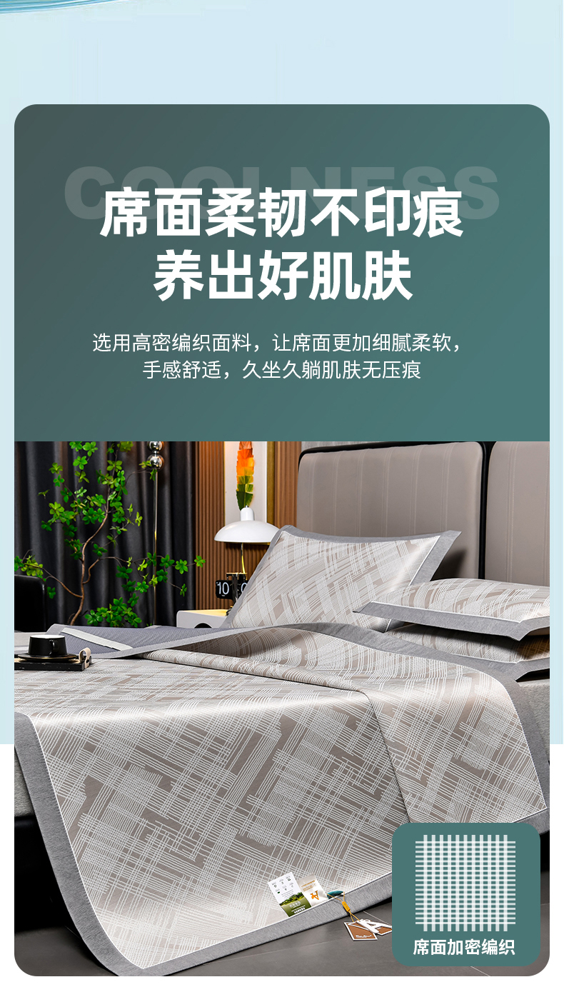 (总)2023新款超精密冰丝席-小斜纹系列-床笠款藤席凉席竹席,粉色,蓝色,绿色,银灰