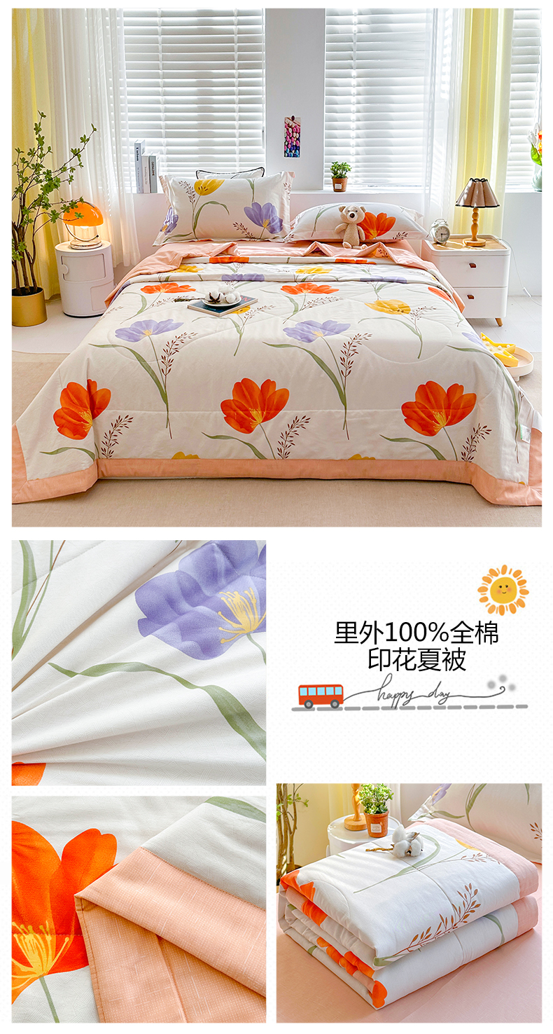 欧夏家纺 2025新款里外全棉印花夏被100%新疆棉花 皮皮凸