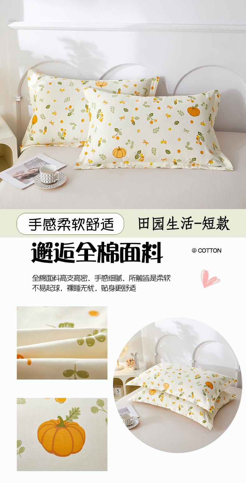 商品名称:三盛源 2025新款枕套全棉48x74cm信封一对学生宿舍纯棉枕头套枕皮单人枕芯通用 田园生活