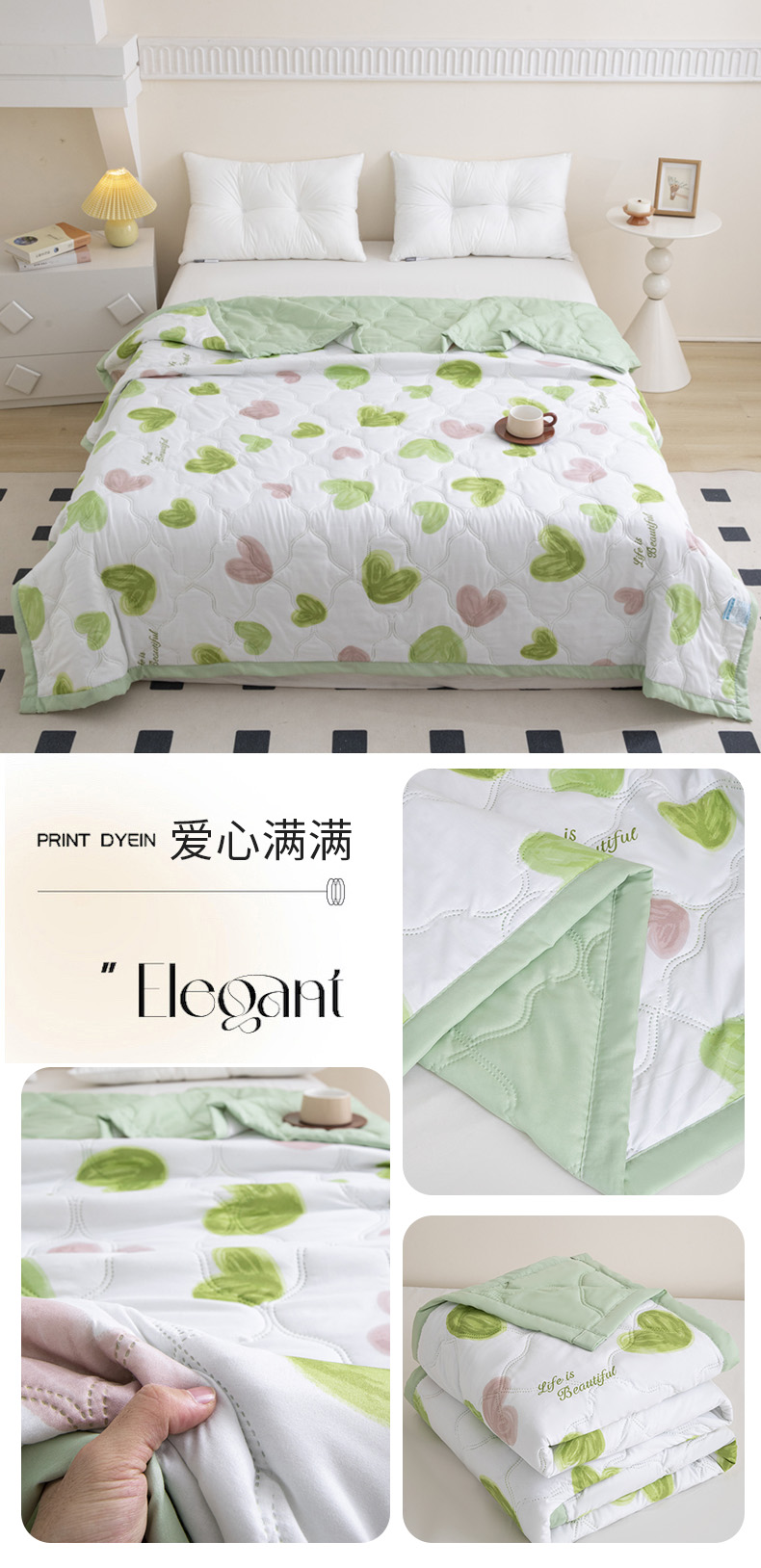 梵心家纺 2025新款直播热款印花夏凉被空调被被子被芯水洗棉夏被 爱心满满