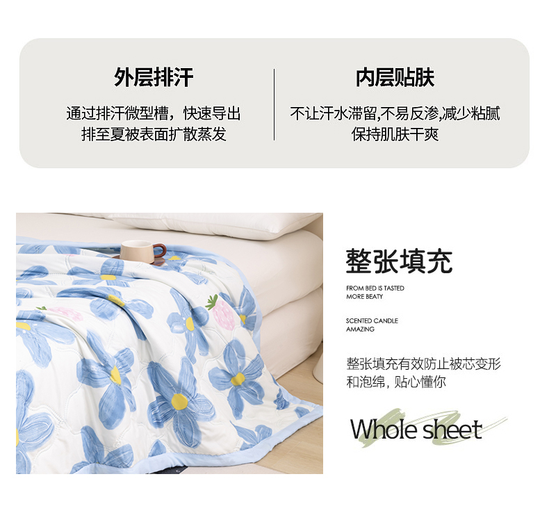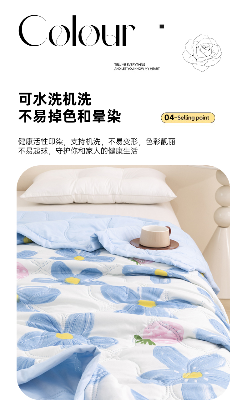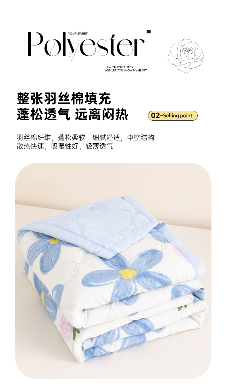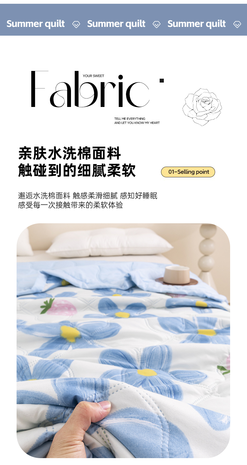 商品名称:梵心家纺 2025新款直播热款印花夏凉被空调被被子被芯水洗棉夏被 蓝色花朵
