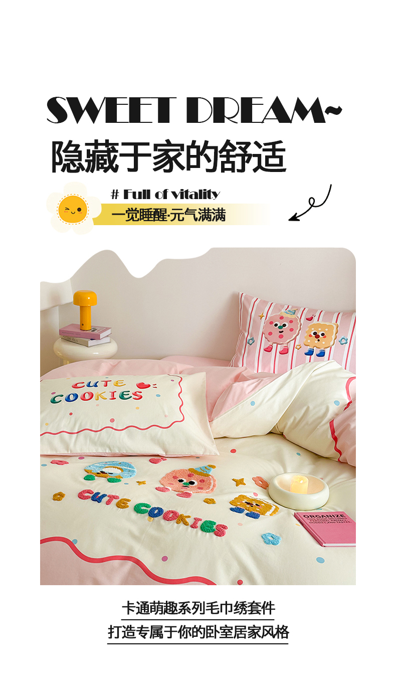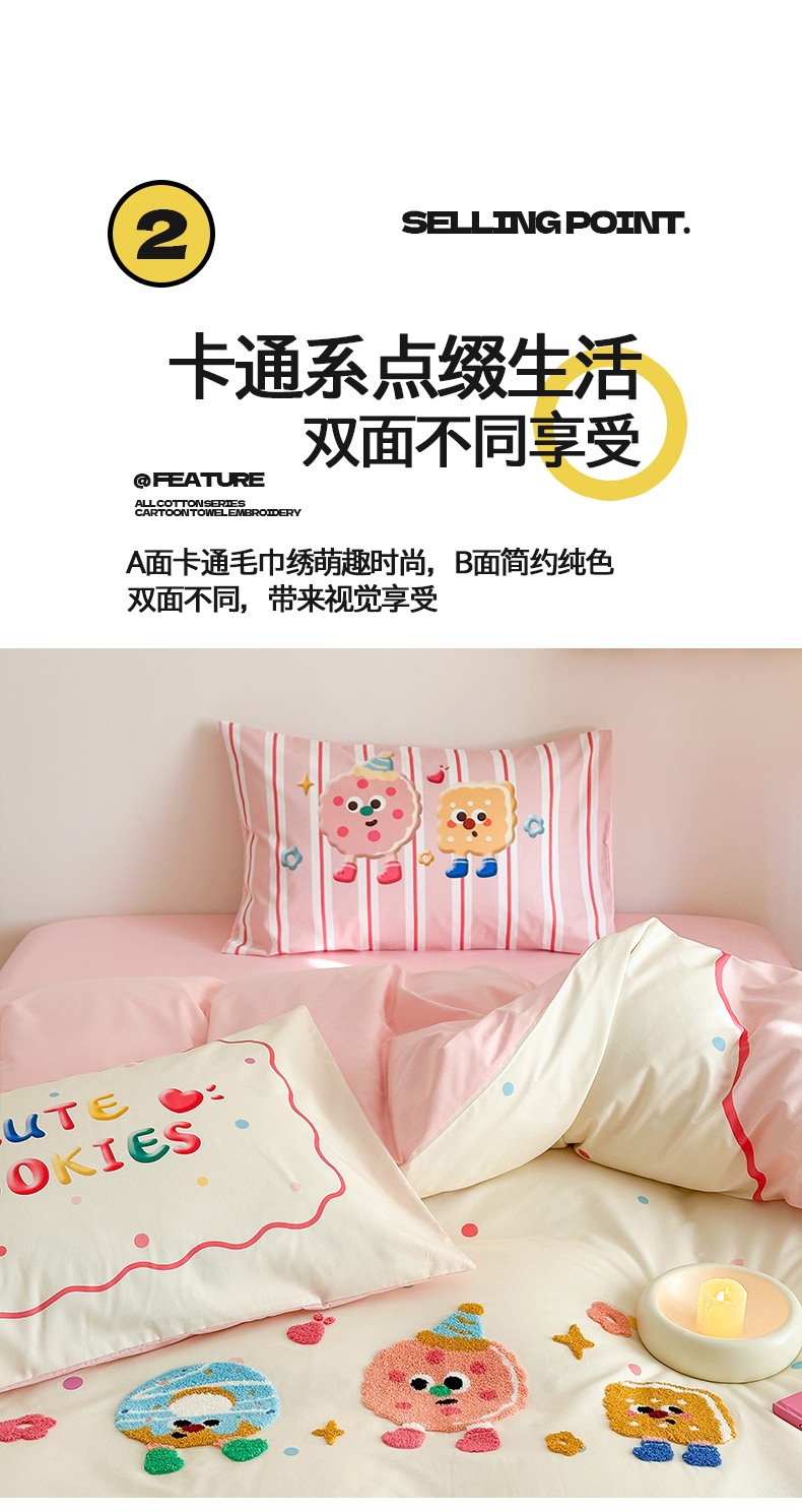 商品名称:花言狐语 2025新款13372全棉印花毛巾绣四件套(提供买家秀) 快乐派对