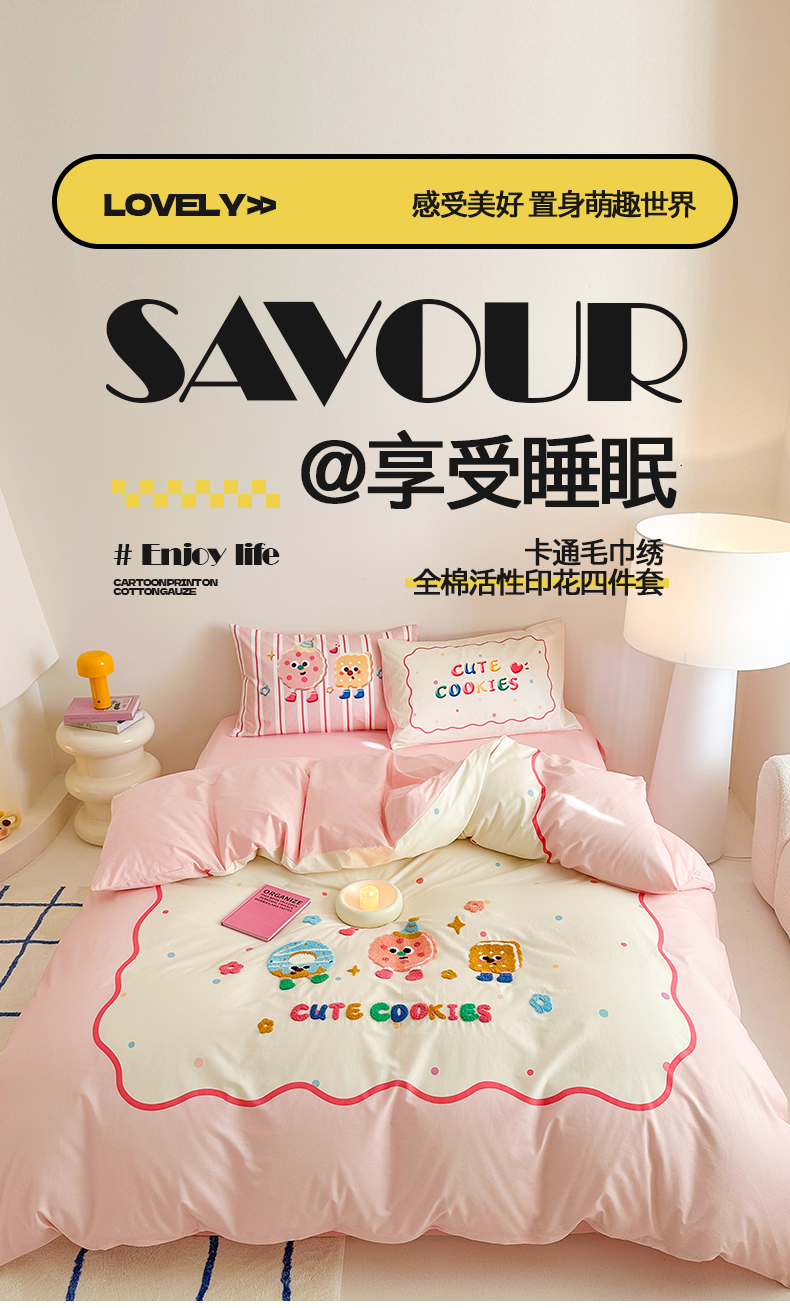 花言狐语 2025新款13372全棉印花毛巾绣四件套(提供买家秀) 快乐派对