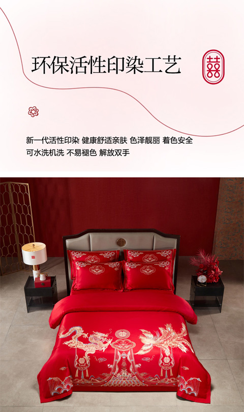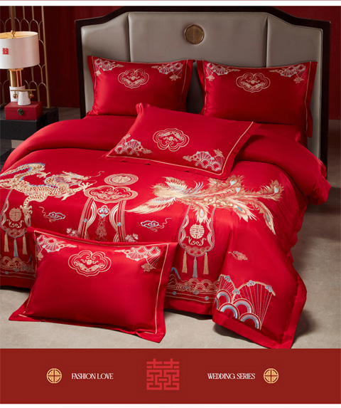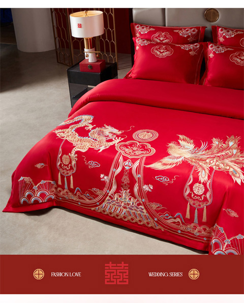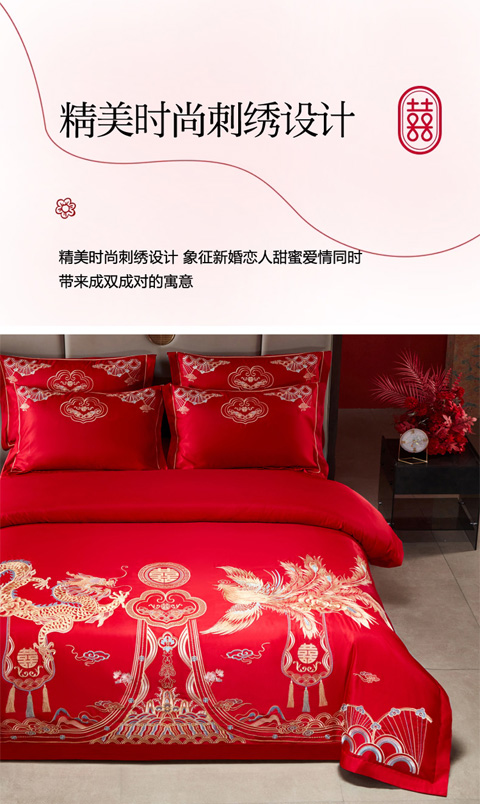 商品名称:菲儿2025新款臻丝绸刺绣婚庆四件套 爱在一起