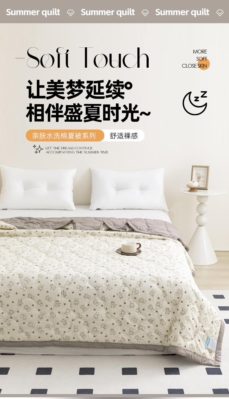 商品名称:席万佳 2025新款直播热款印花夏凉被空调被被子被芯水洗棉夏被 比熊院长