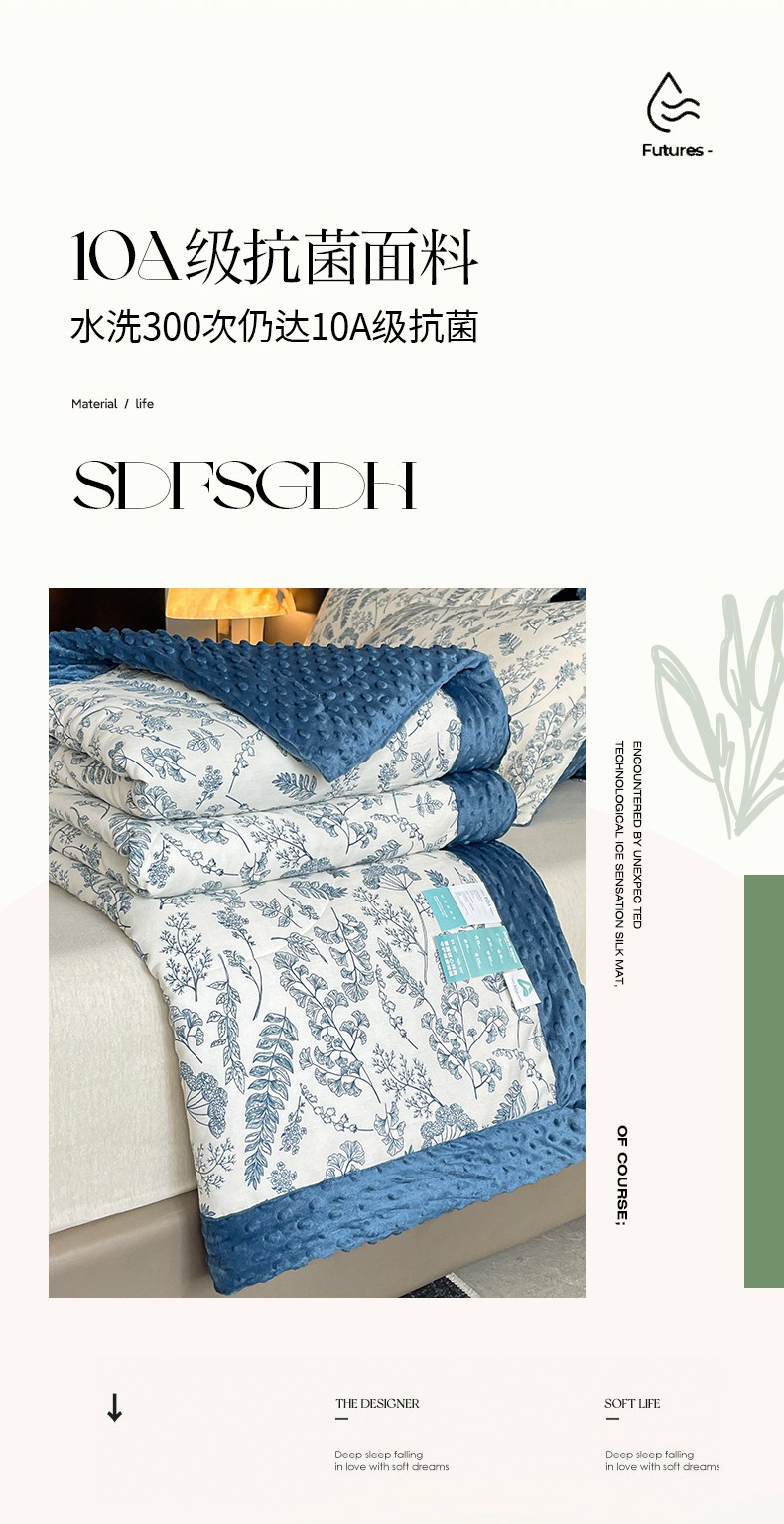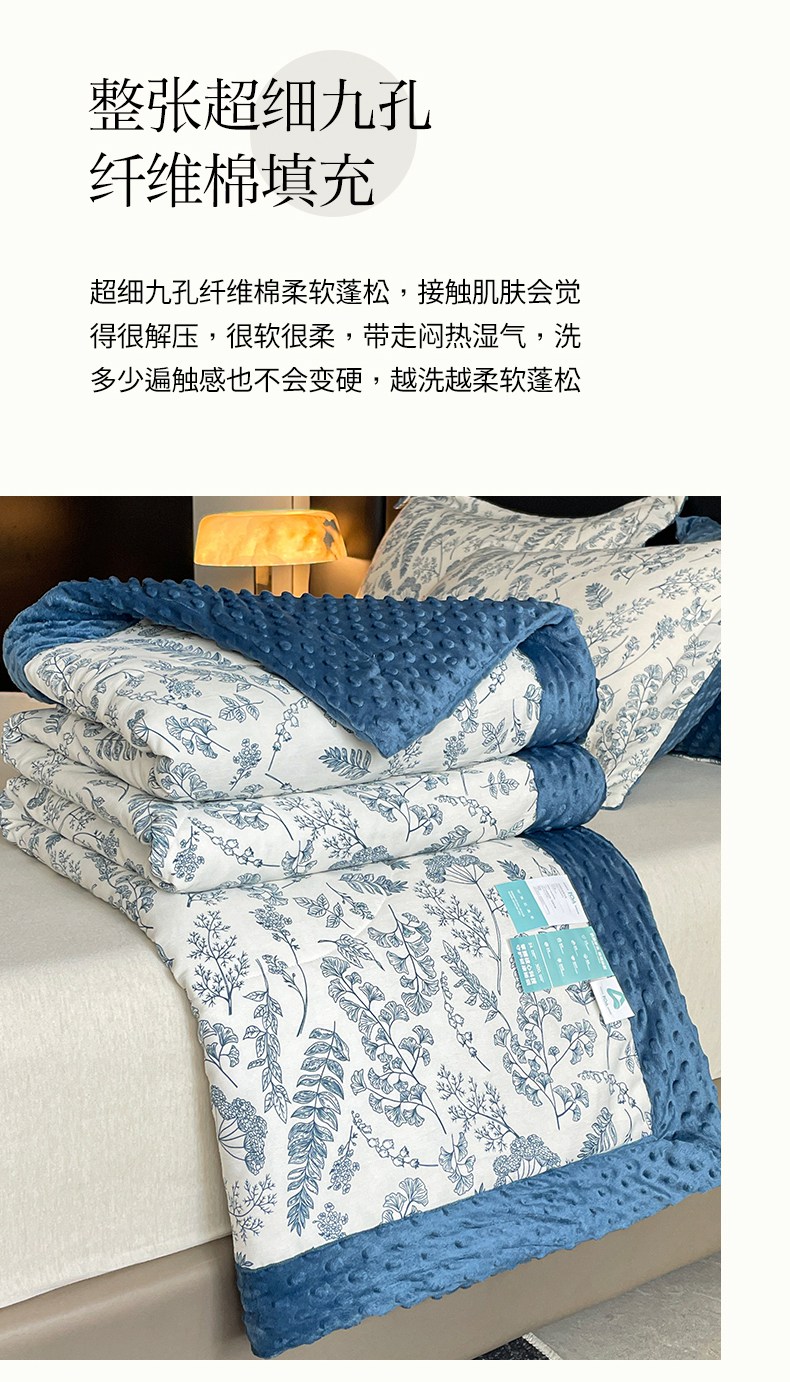 宝士康家纺 2025新款10A抗菌双层纱豆豆绒夏被 青花瓷
