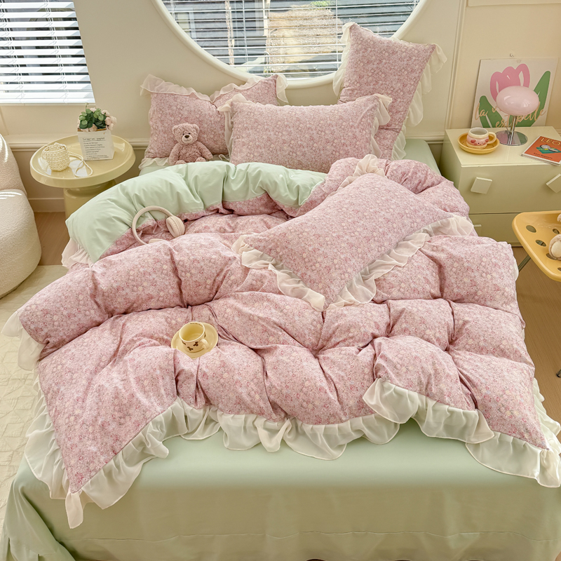 商品名称:苏拉家居 2025新款雪纺花边云感提花针织双层纱四件套 可妮