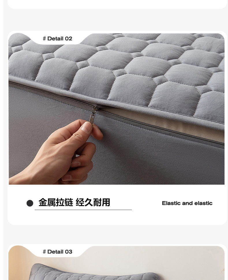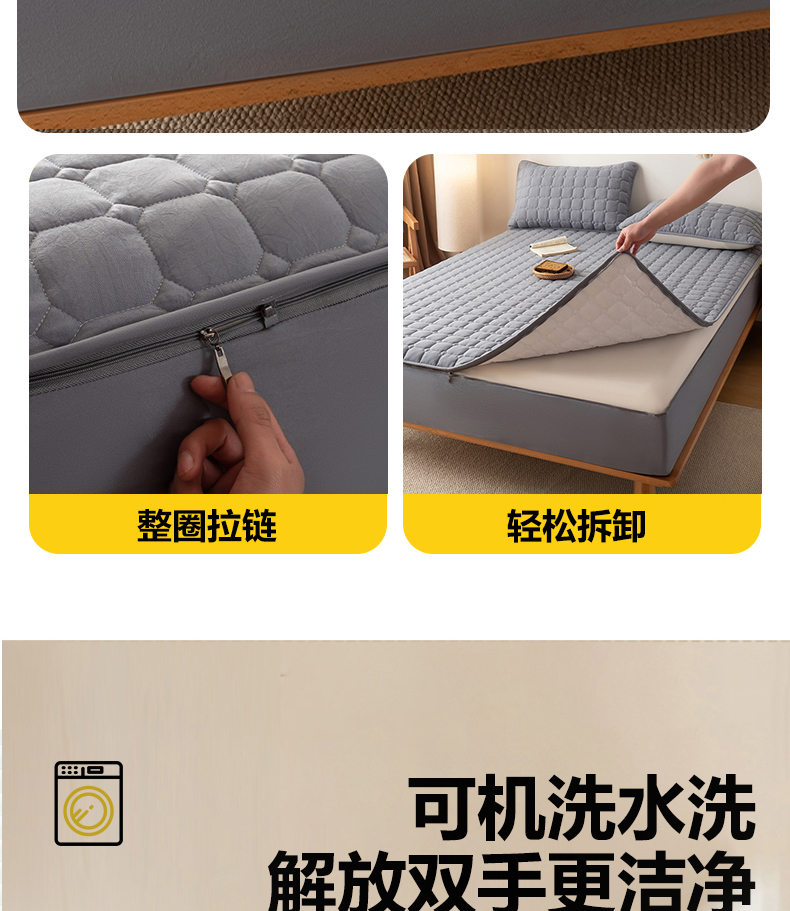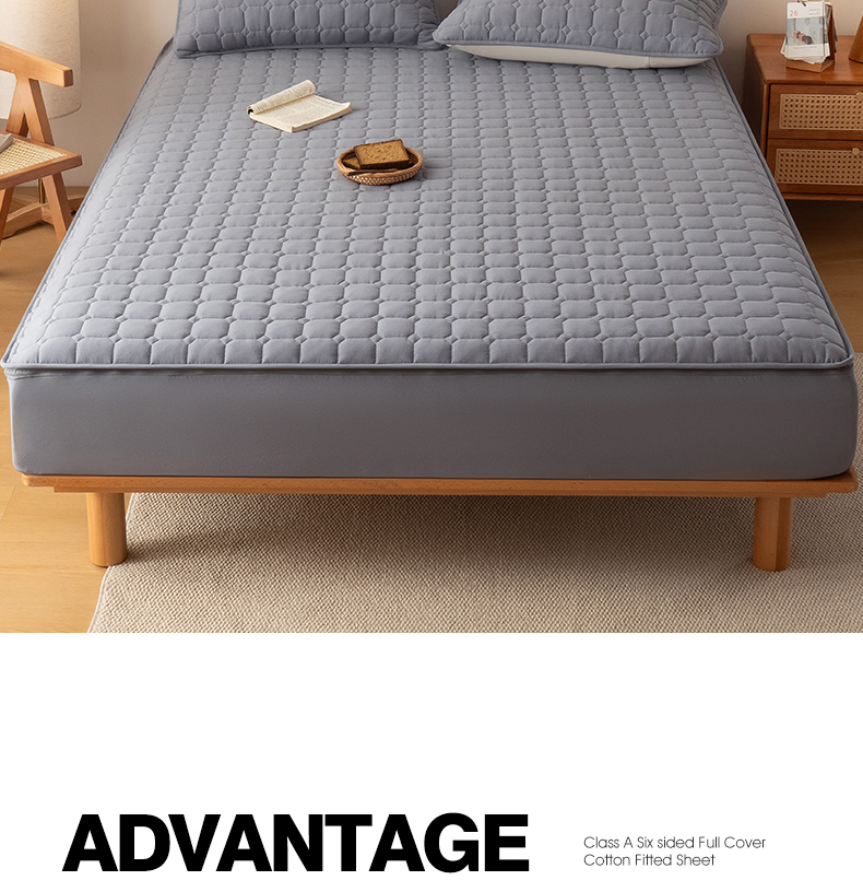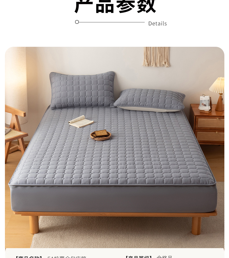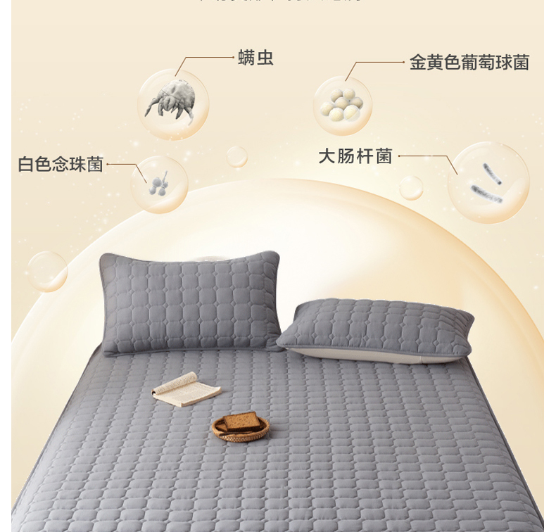 • 91家纺网 家纺一手货源 找家纺 叠派家纺 2025新款5A抗菌A类夹棉床笠经典款防水款系列 包边款-经典格月光灰