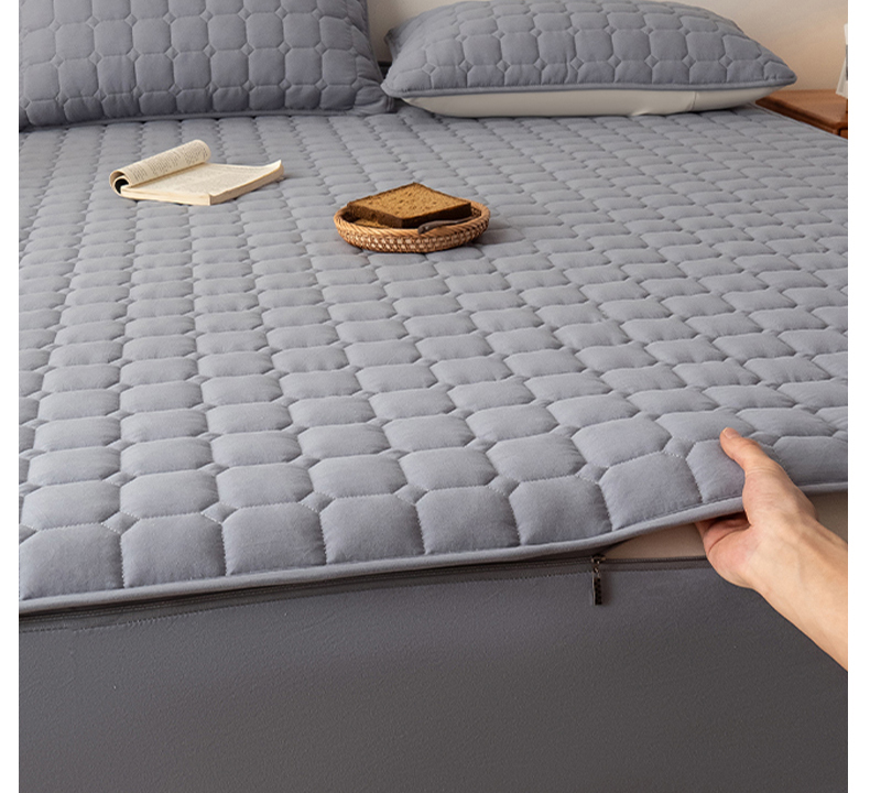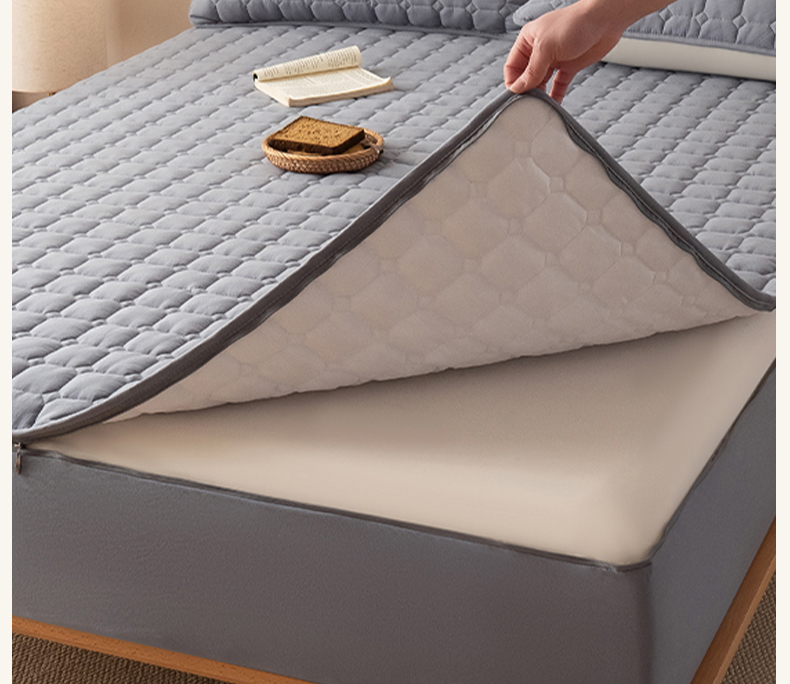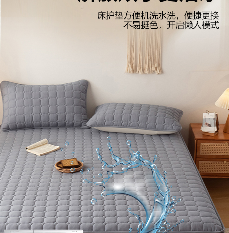 叠派家纺 2025新款5A抗菌A类夹棉床笠经典款防水款系列 包边款-经典格月光灰