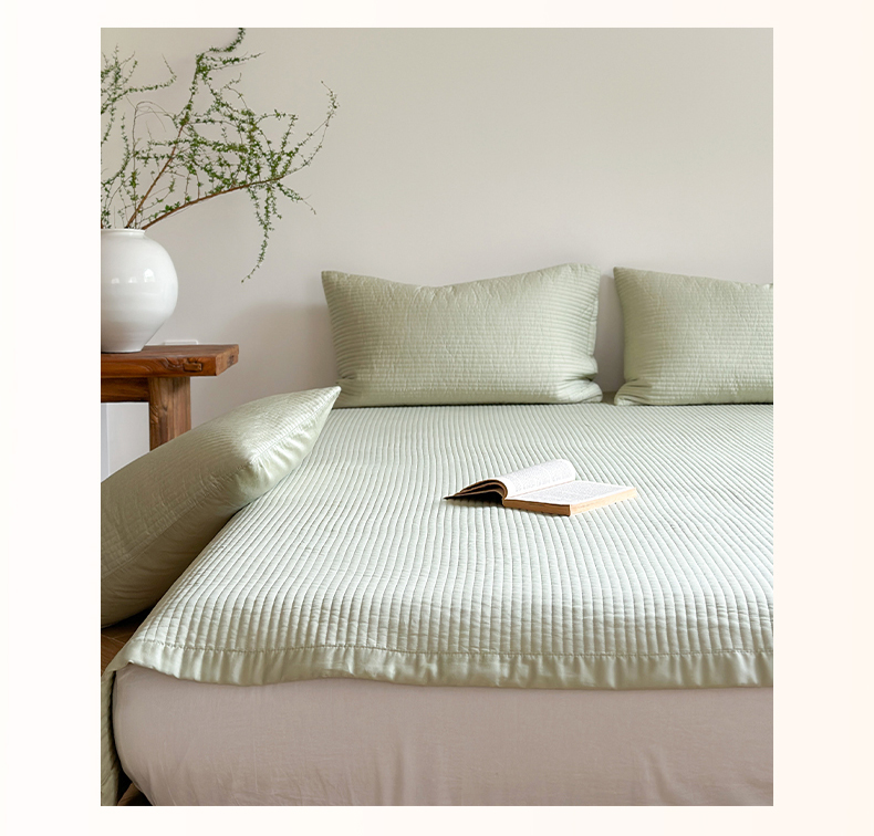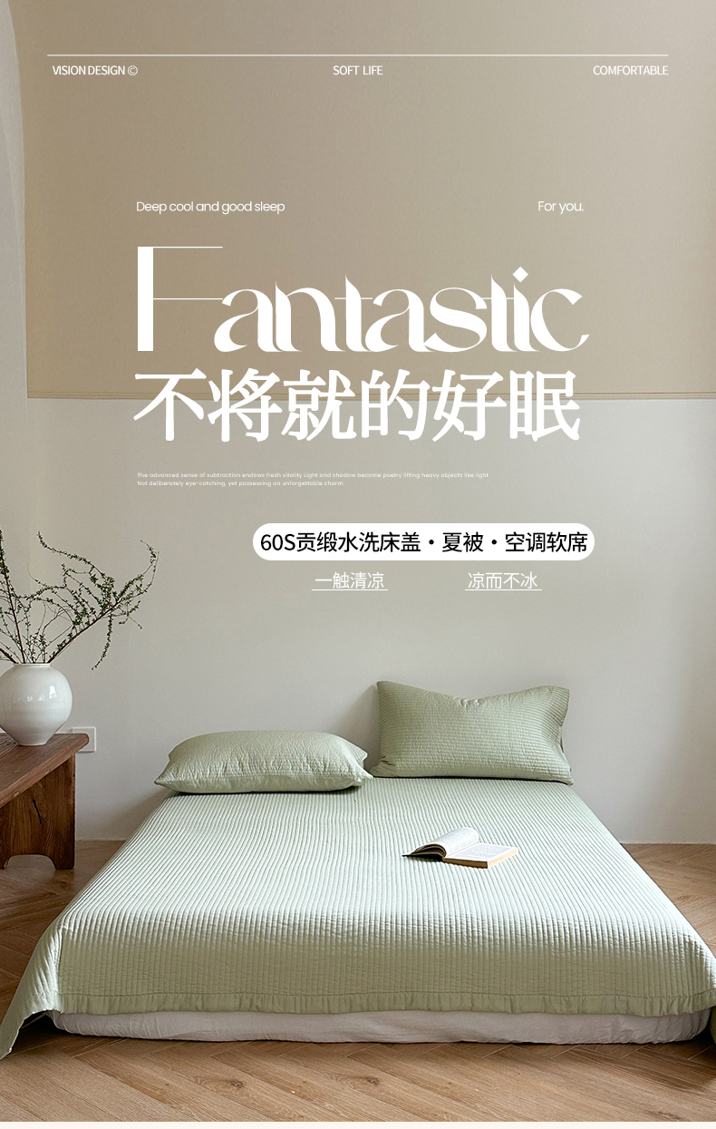 漫调家纺 2025新款双面60S贡缎床盖夏被 春荷绿