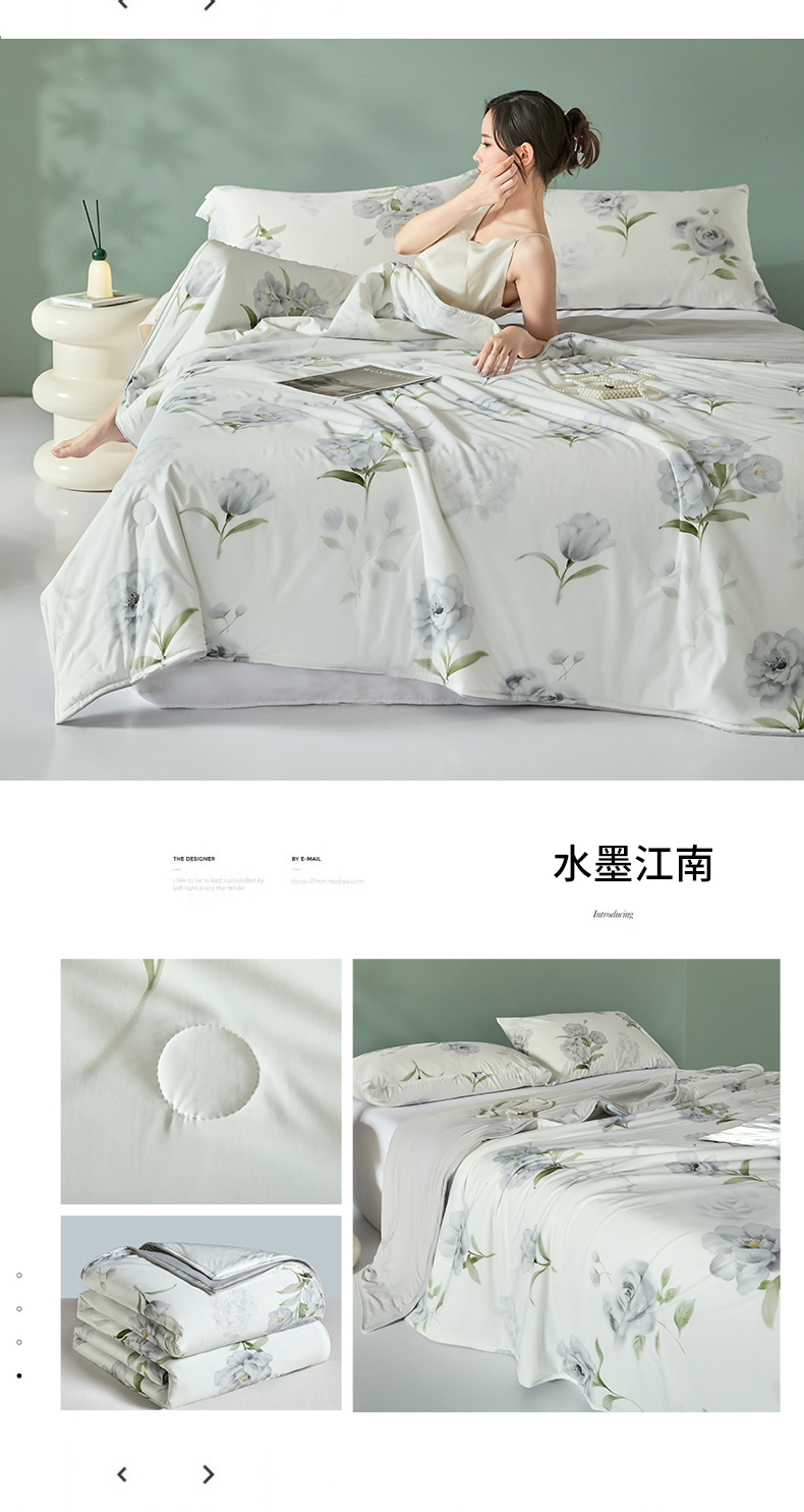 2025春夏新款100%双面锦纶美式印花夏被凉感空调被 水墨江南