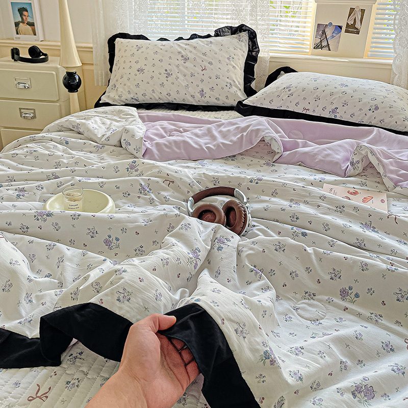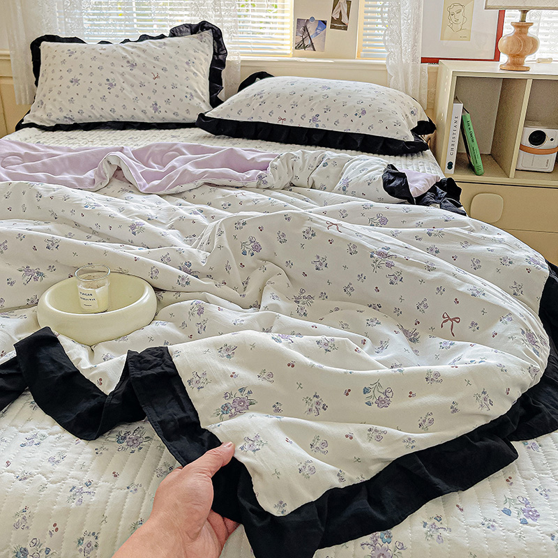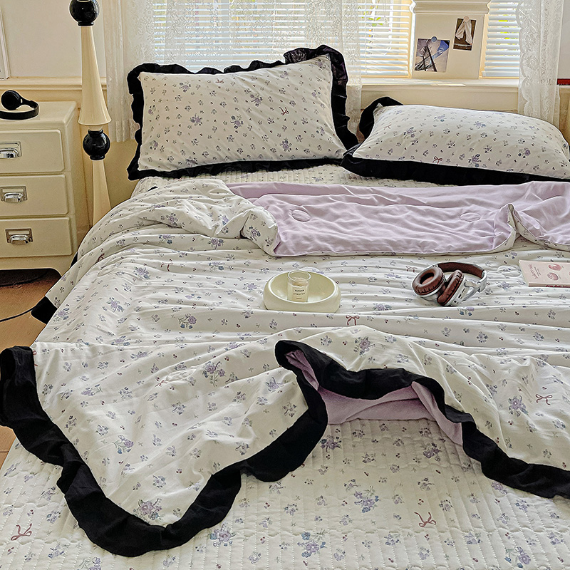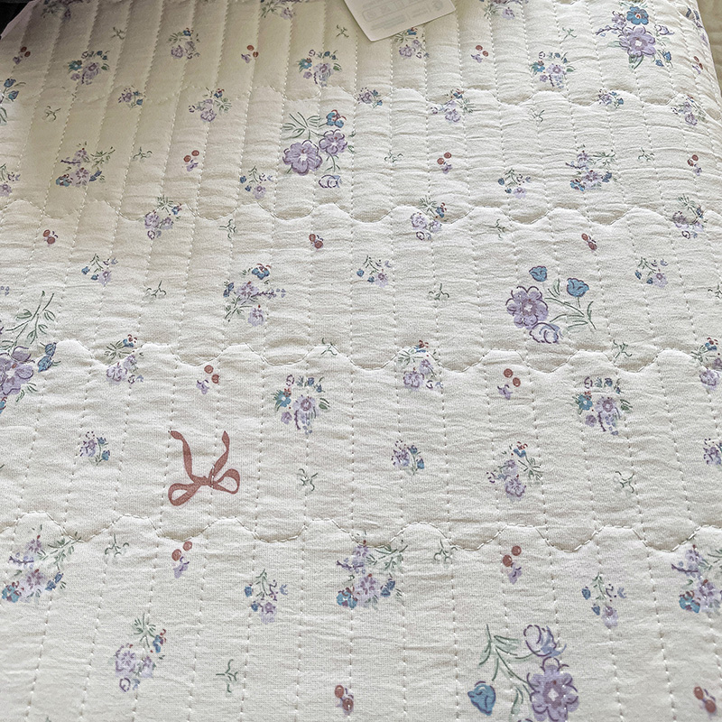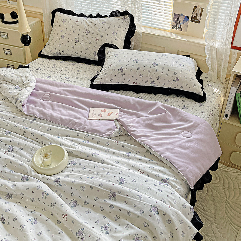 商品名称:米莱家纺 2025新款A类赫本风针织双层纱夏被床盖四件套 丁香紫