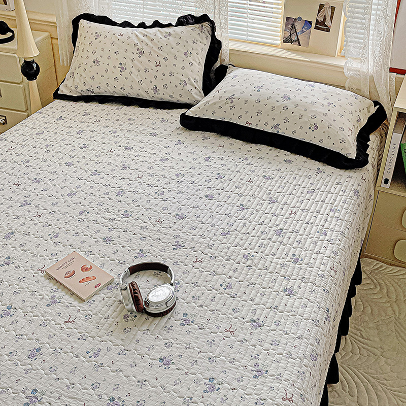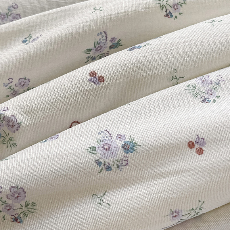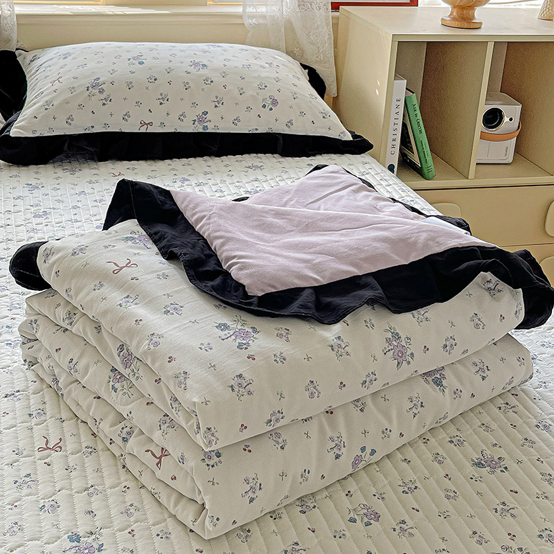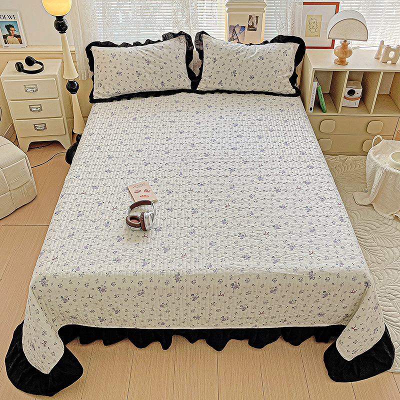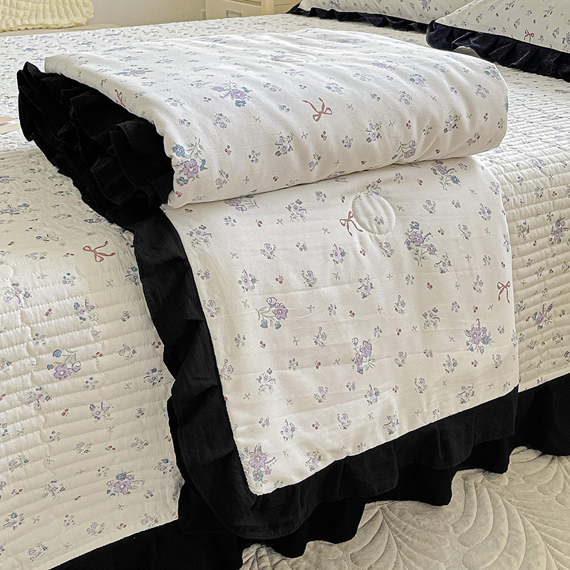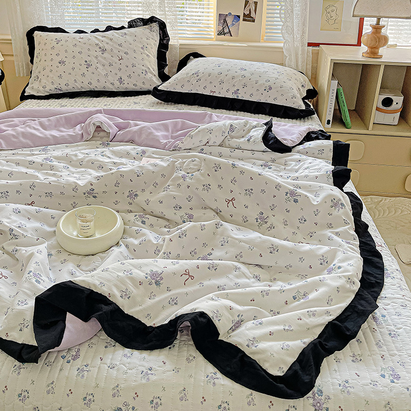 商品名称:米莱家纺 2025新款A类赫本风针织双层纱夏被床盖四件套 丁香紫