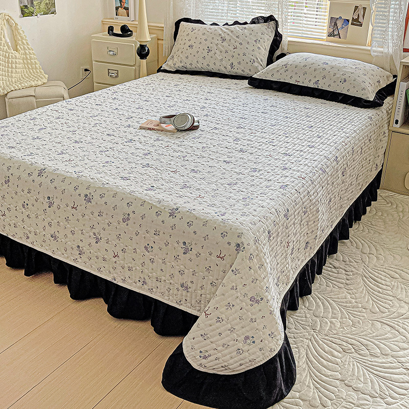 米莱家纺 2025新款A类赫本风针织双层纱夏被床盖四件套 丁香紫