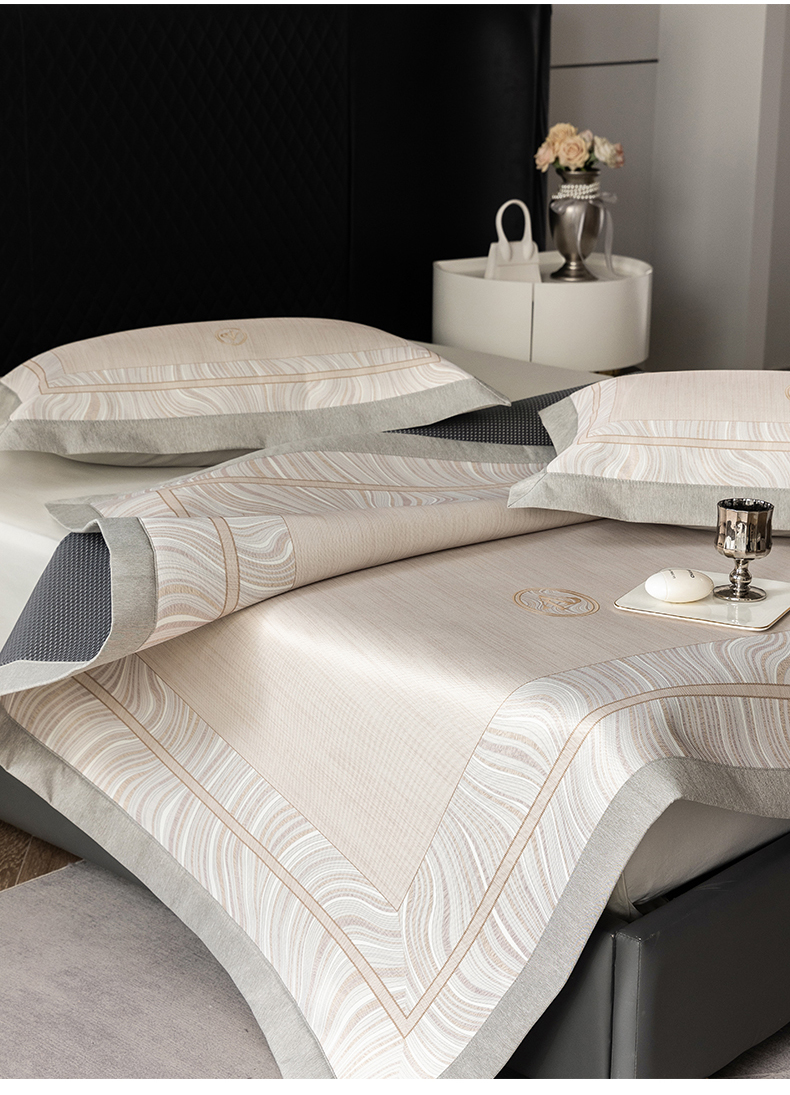 (总)三味舒屋 2025新款麦吉拉时尚印花冰藤凉席席子,麦吉拉 米 床席,麦吉拉 蓝 床席,麦吉拉蓝 床笠,麦吉拉米 床笠