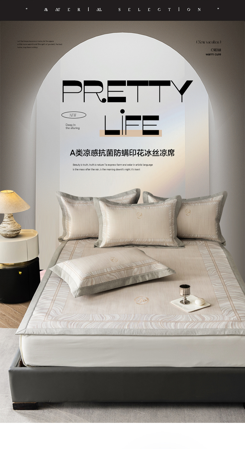 (总)三味舒屋 2025新款仲夏手札时尚印花冰藤凉席席子,仲夏手札米 床席,仲夏手札粉 床席,仲夏手札灰 床席,仲夏手札粉 床笠,仲夏手札灰 床笠,仲夏手札米 床笠