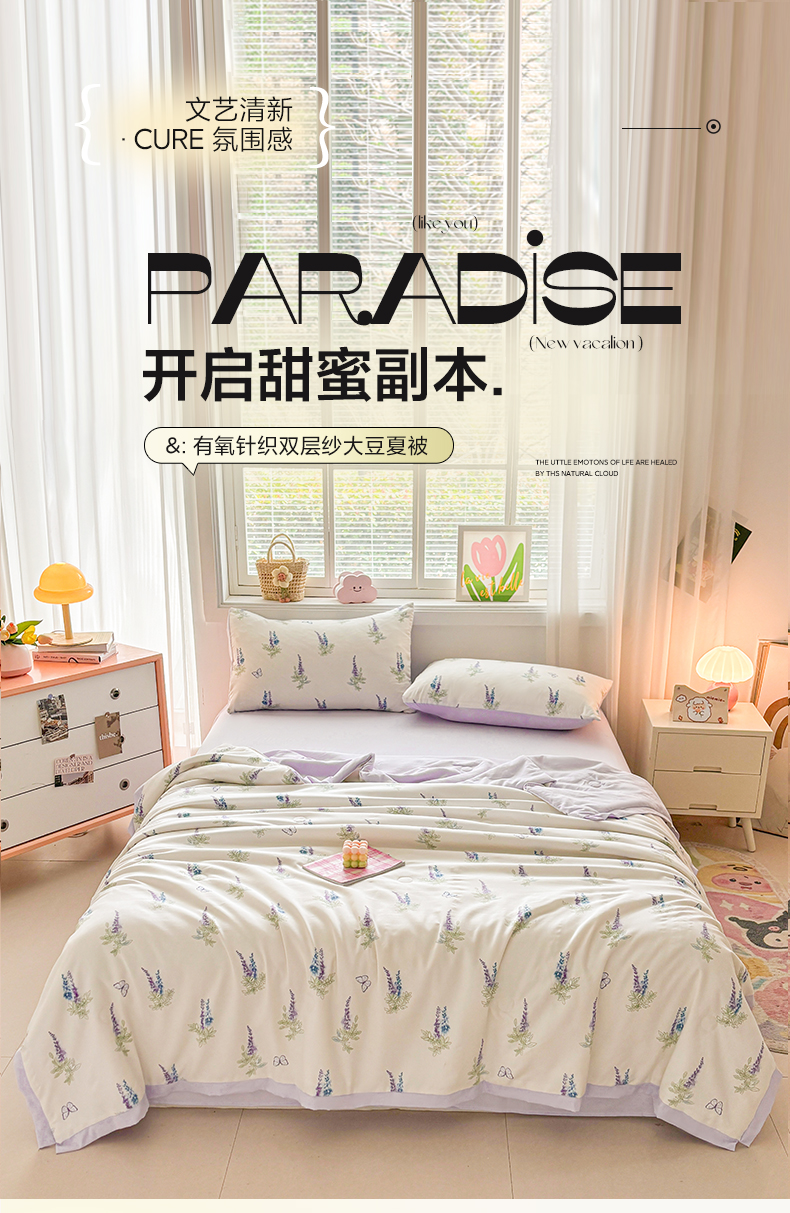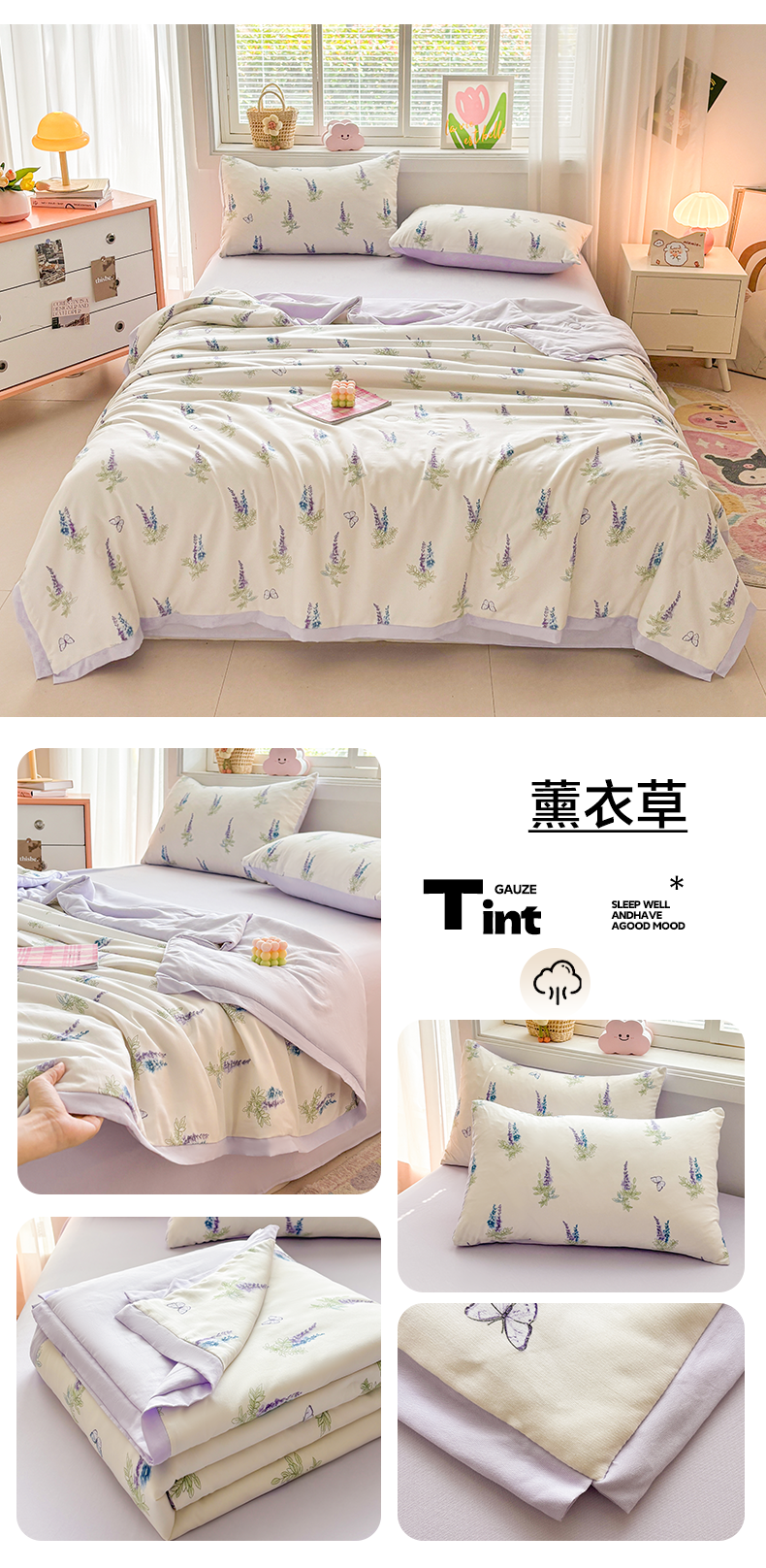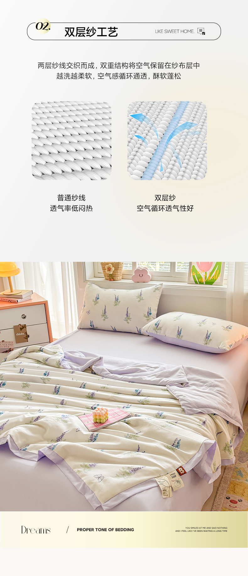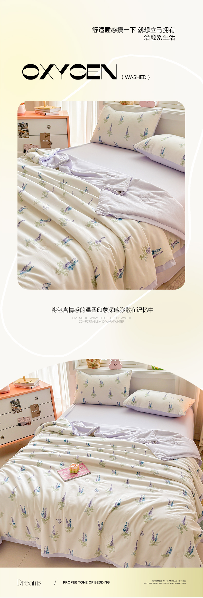 • 91家纺网 家纺一手货源 找家纺 典冠 2025新款有氧针织双层纱大豆夏被夏凉被空调被 薰衣草
