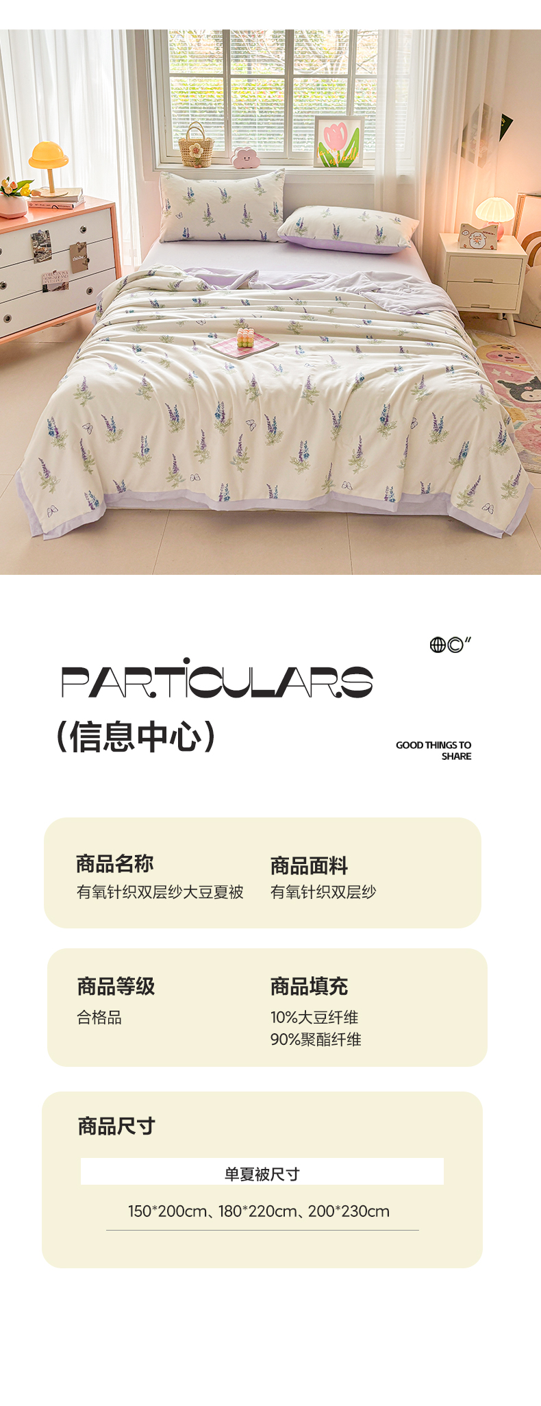 当前位置: 91家纺网 > 商品网购 > 被子 > 夏被 > 典冠 2025新款有氧针织双层纱大豆夏被夏凉被空调被 薰衣草