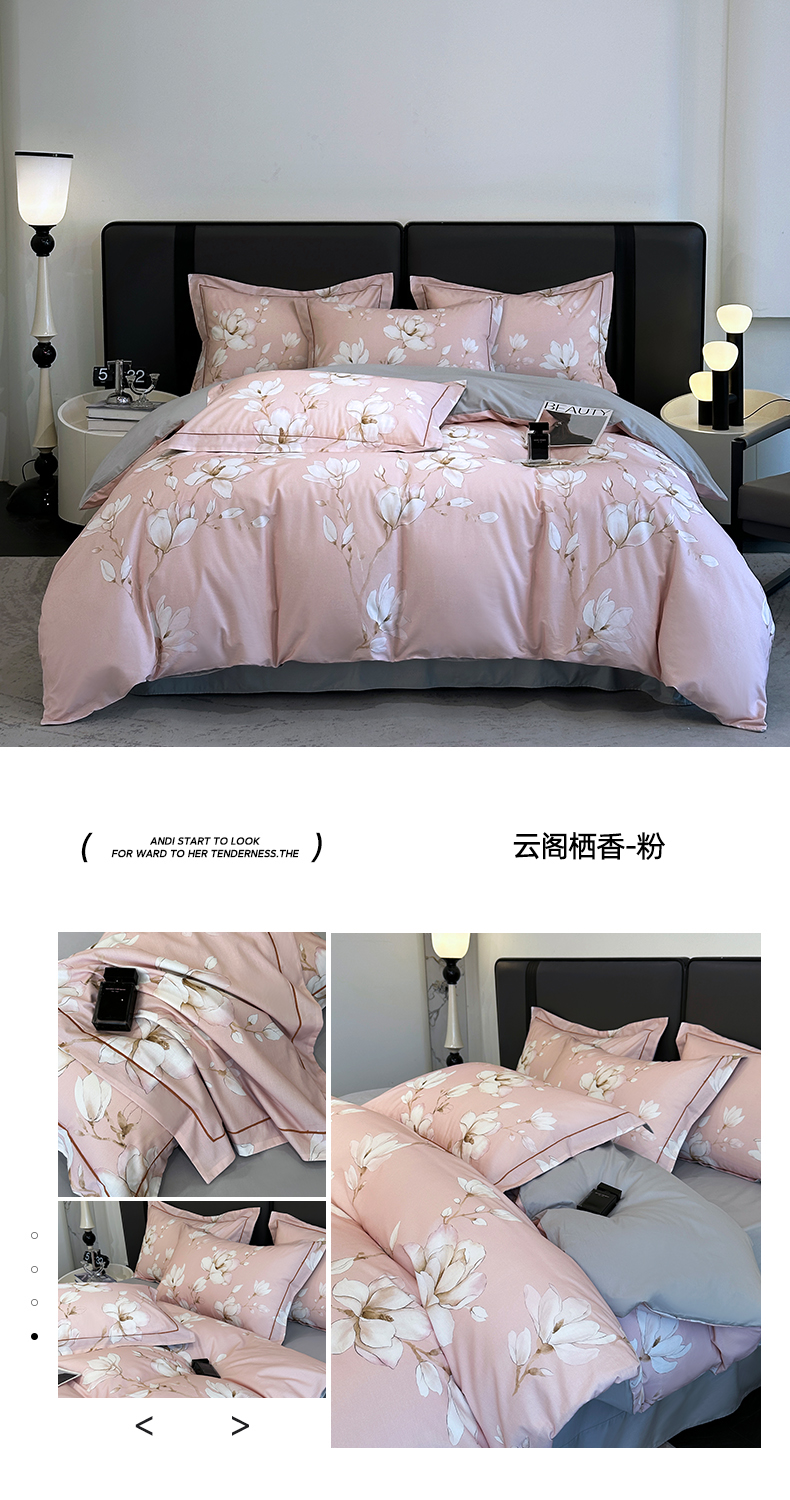 乐蔻家纺 2025新款全棉13376数码印花四件套 云阁栖香 粉