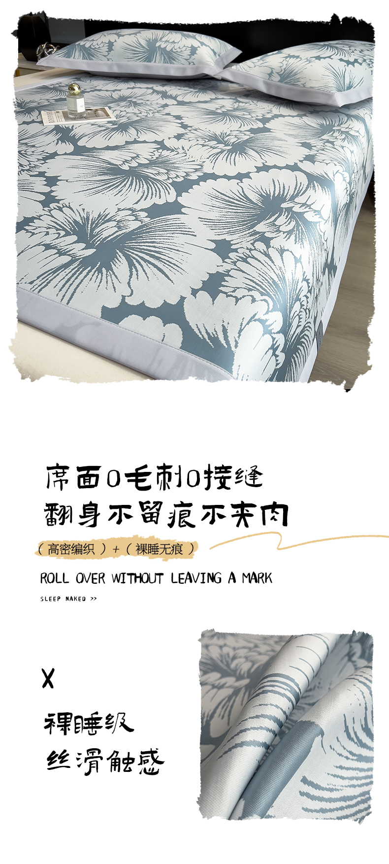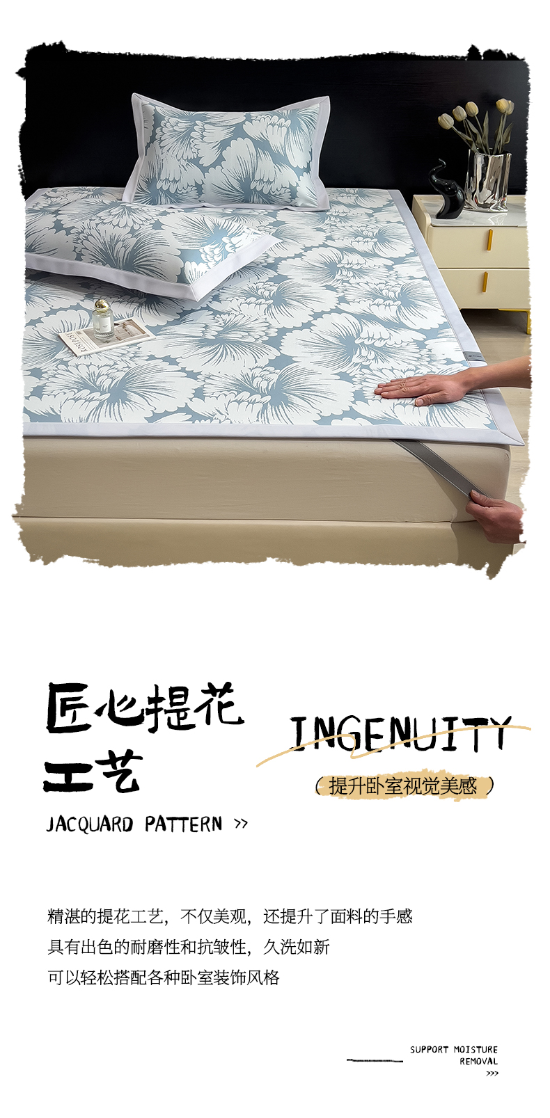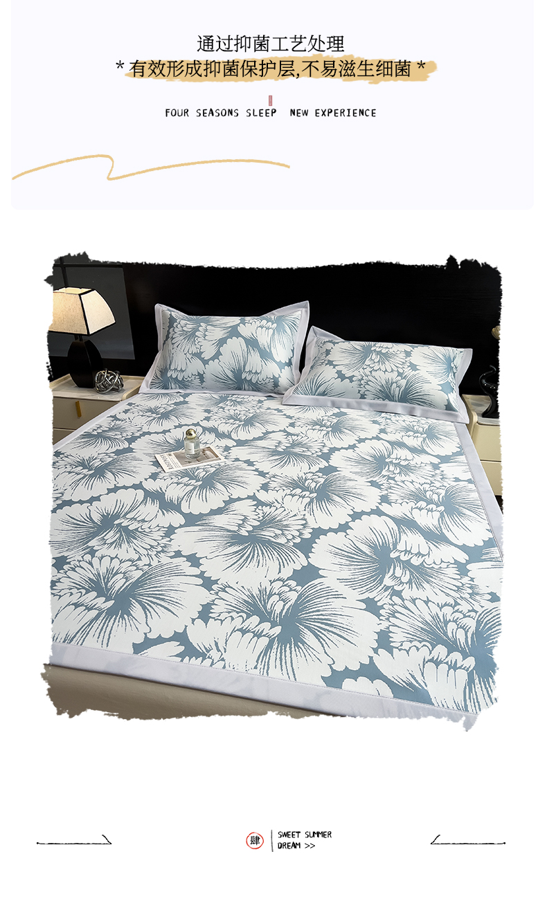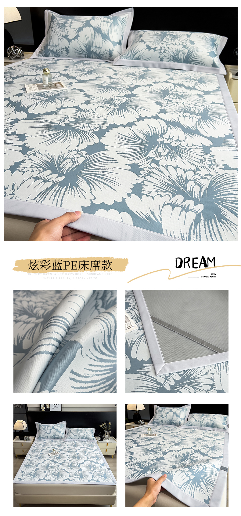 商品名称:倾慕家纺 2025新款简约PE50提花凉感席席子凉席-床席款 炫彩蓝PE床席款
