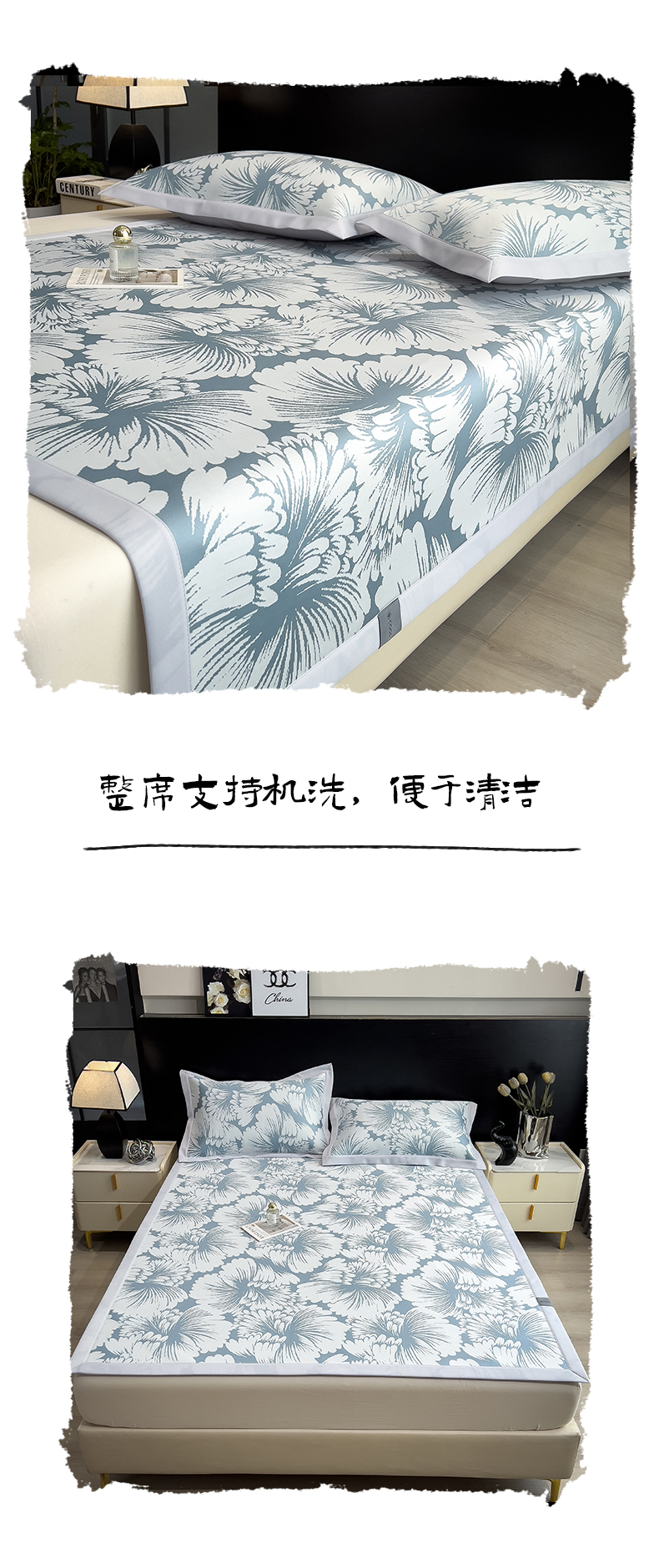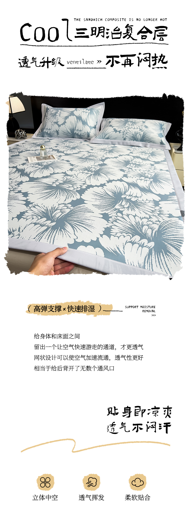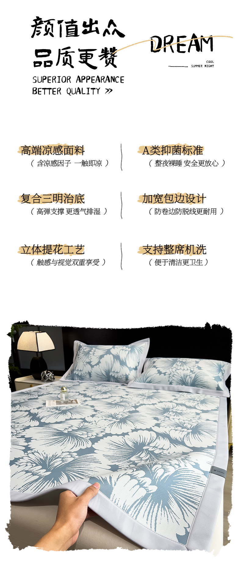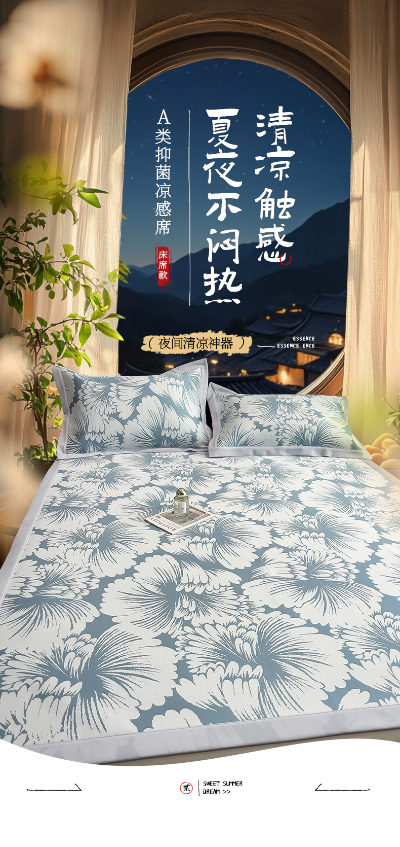 商品名称:倾慕家纺 2025新款简约PE50提花凉感席席子凉席-床席款 炫彩蓝PE床席款