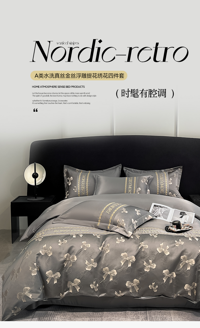 商品名称:(总)米彩家纺 2025新款A类水洗真丝金丝浮雕提花绣花四件套