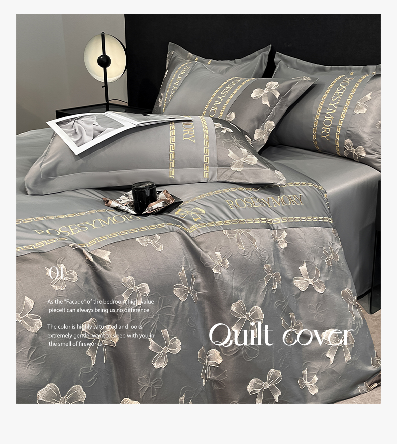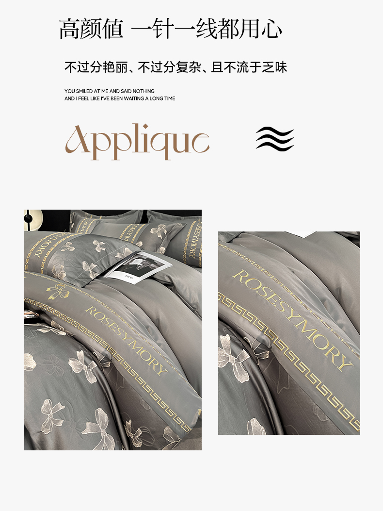 (总)米彩家纺 2025新款A类水洗真丝亮光浮雕花边四件套,粉香槟,粉玉,奶昔白,浅灰,天兰