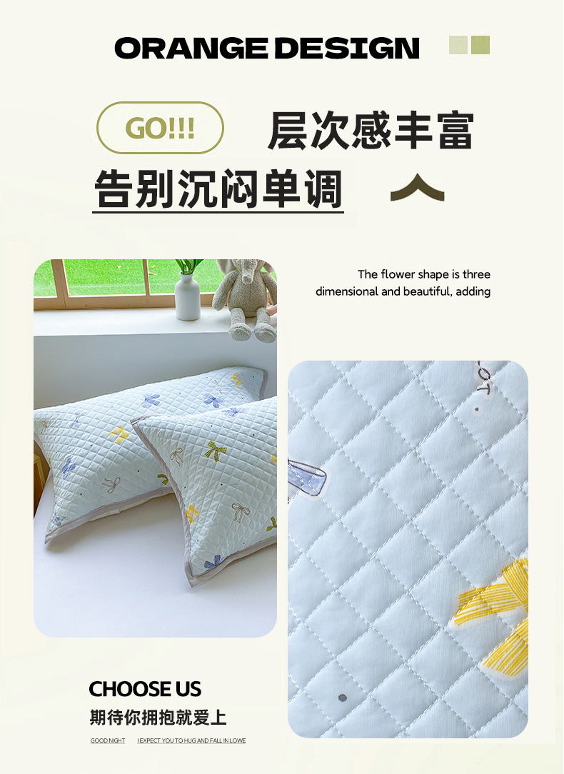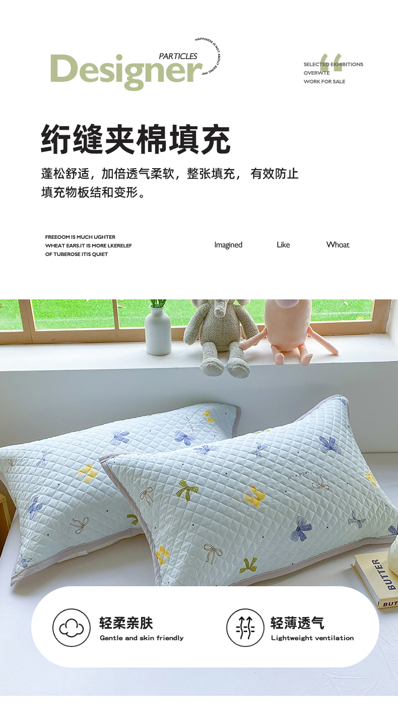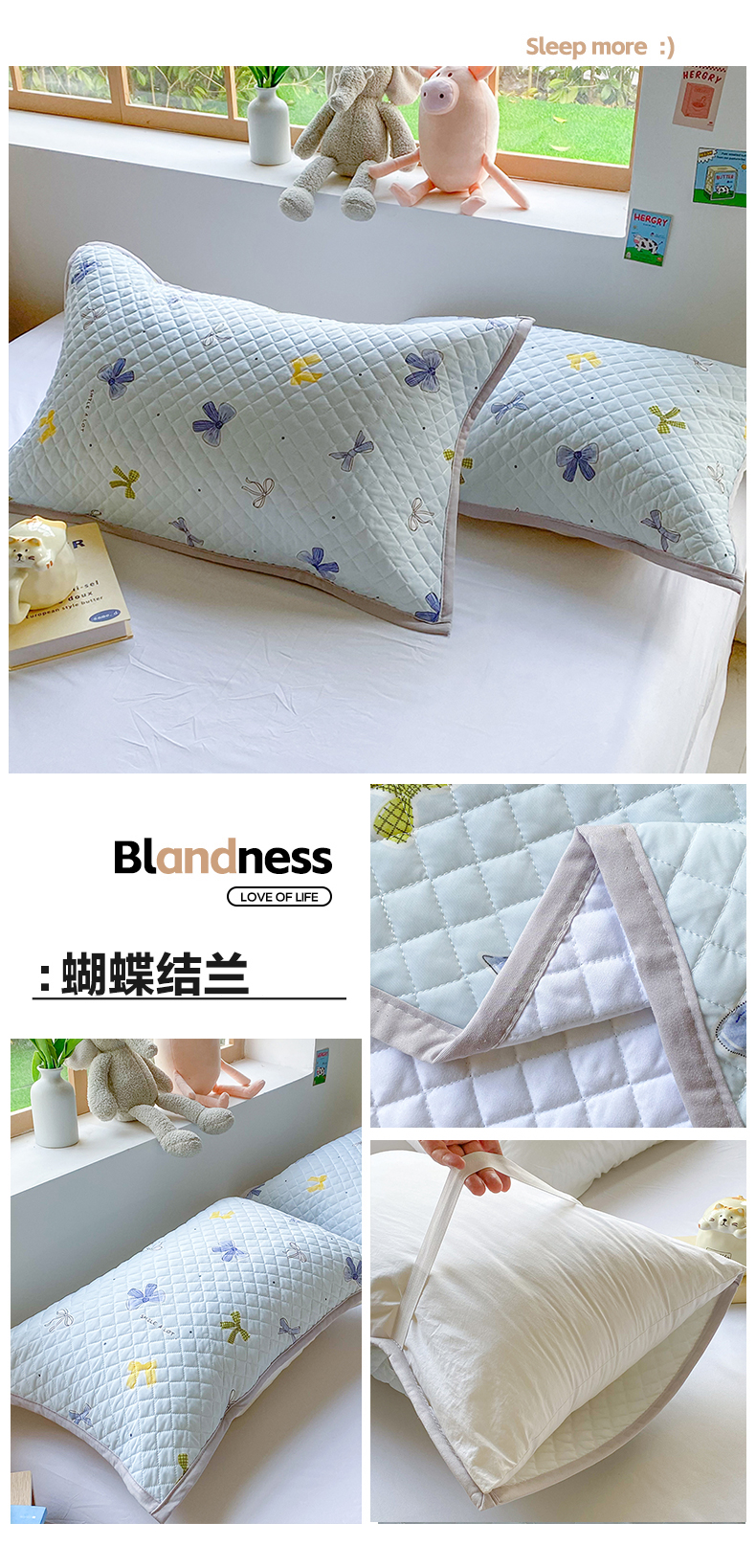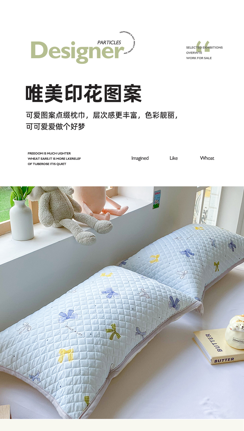 商品名称:美宜家 2025新款凉感丝绗缝夹棉印花枕巾 蝴蝶结兰50x80cm一只