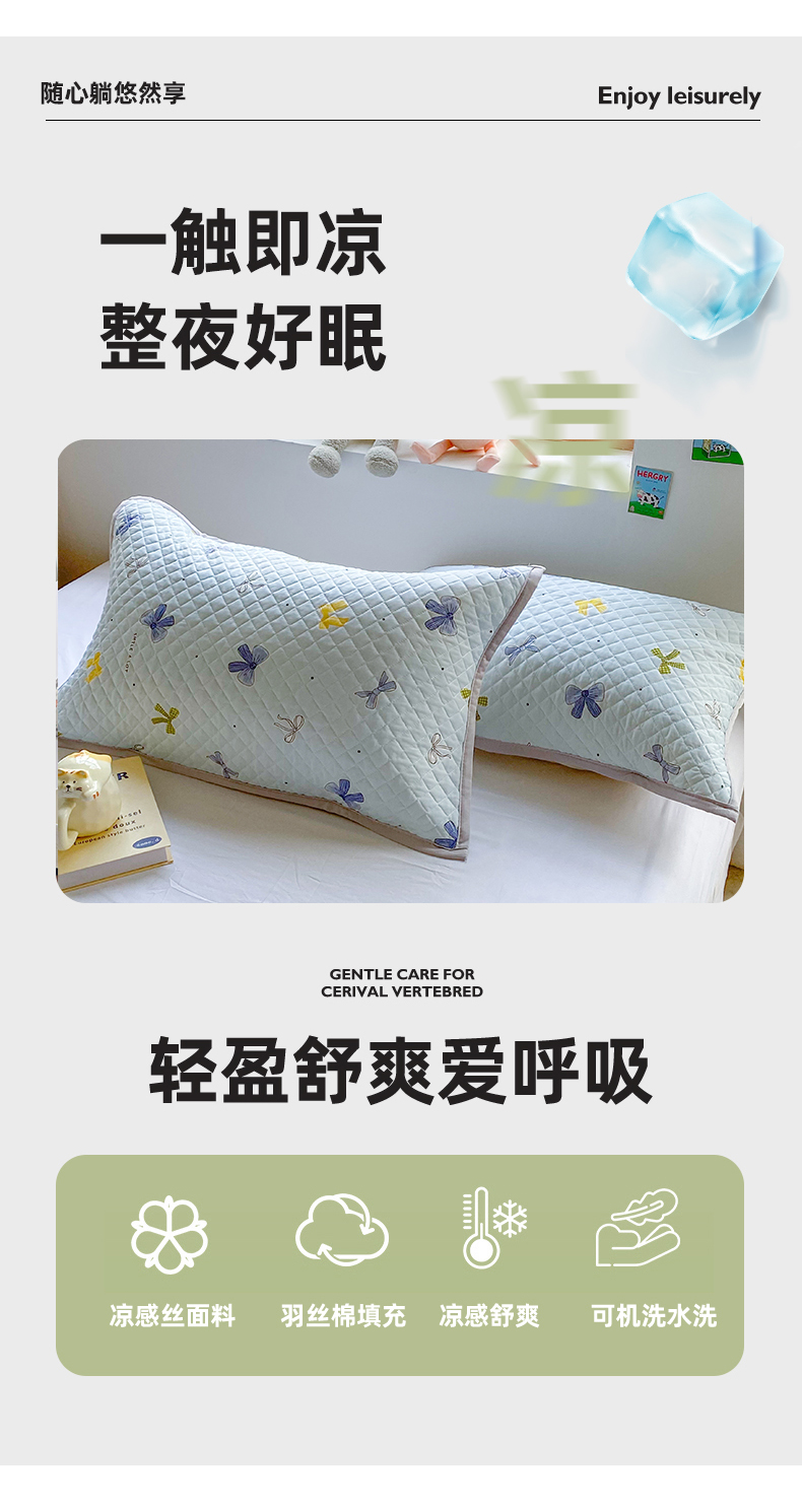 美宜家 2025新款凉感丝绗缝夹棉印花枕巾 蝴蝶结兰50x80cm一只