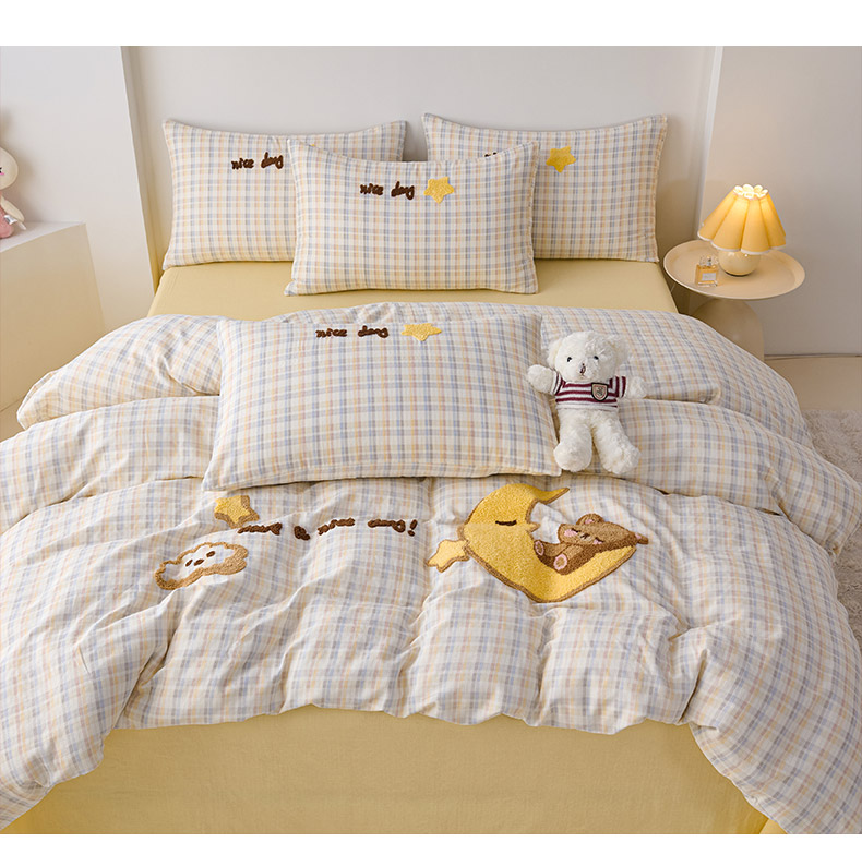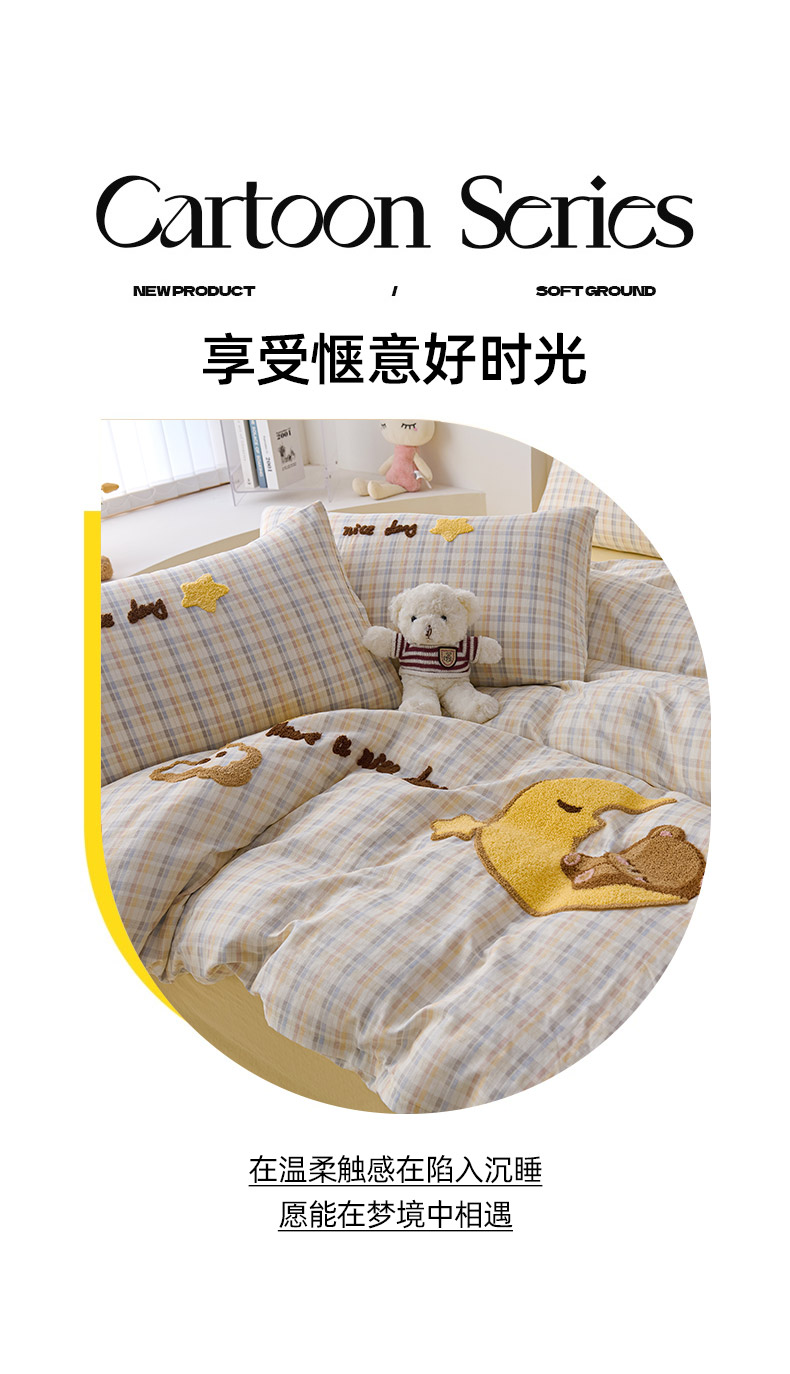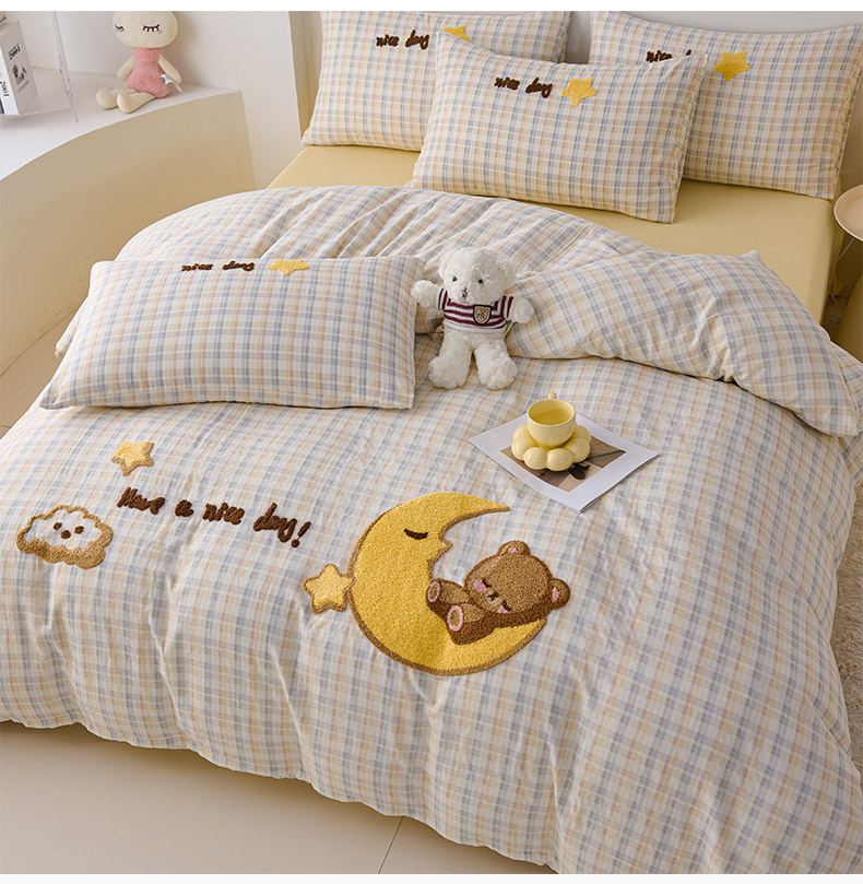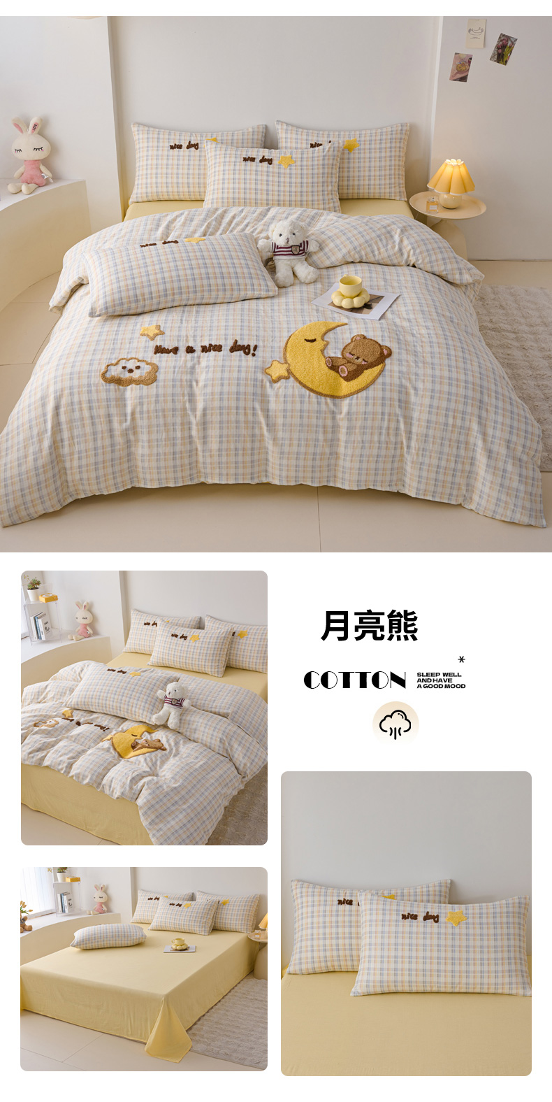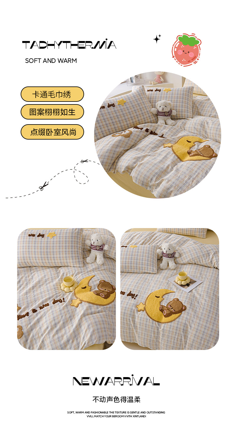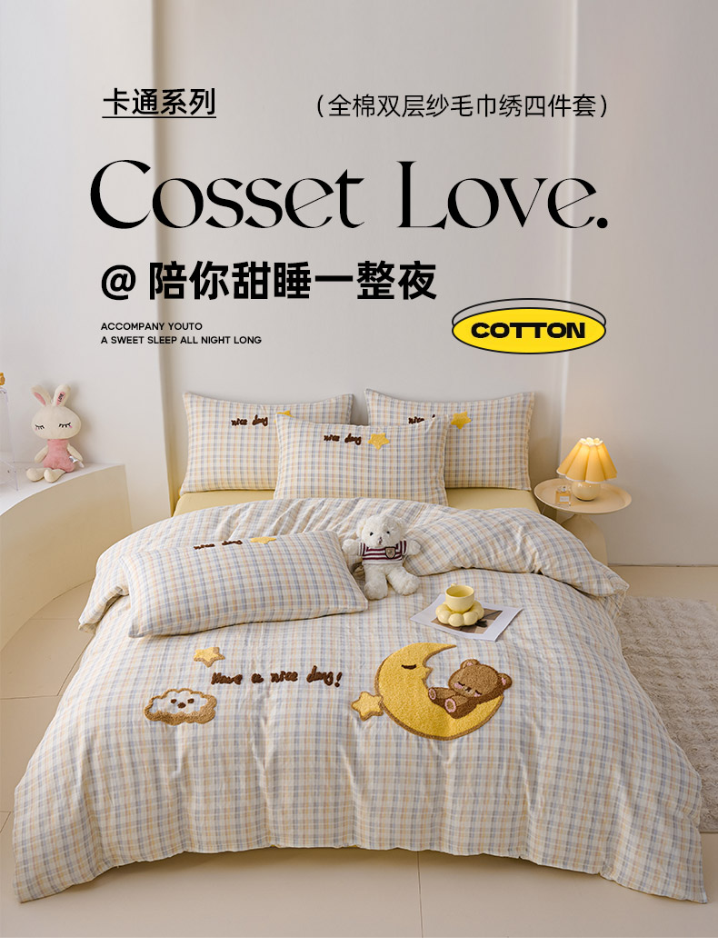 当前位置: 91家纺网 > 商品网购 > 床品套件 > 四件套 > 全棉普通四件套 > 爱思佳2025新款全棉双层纱毛巾绣系列四件套 月亮熊