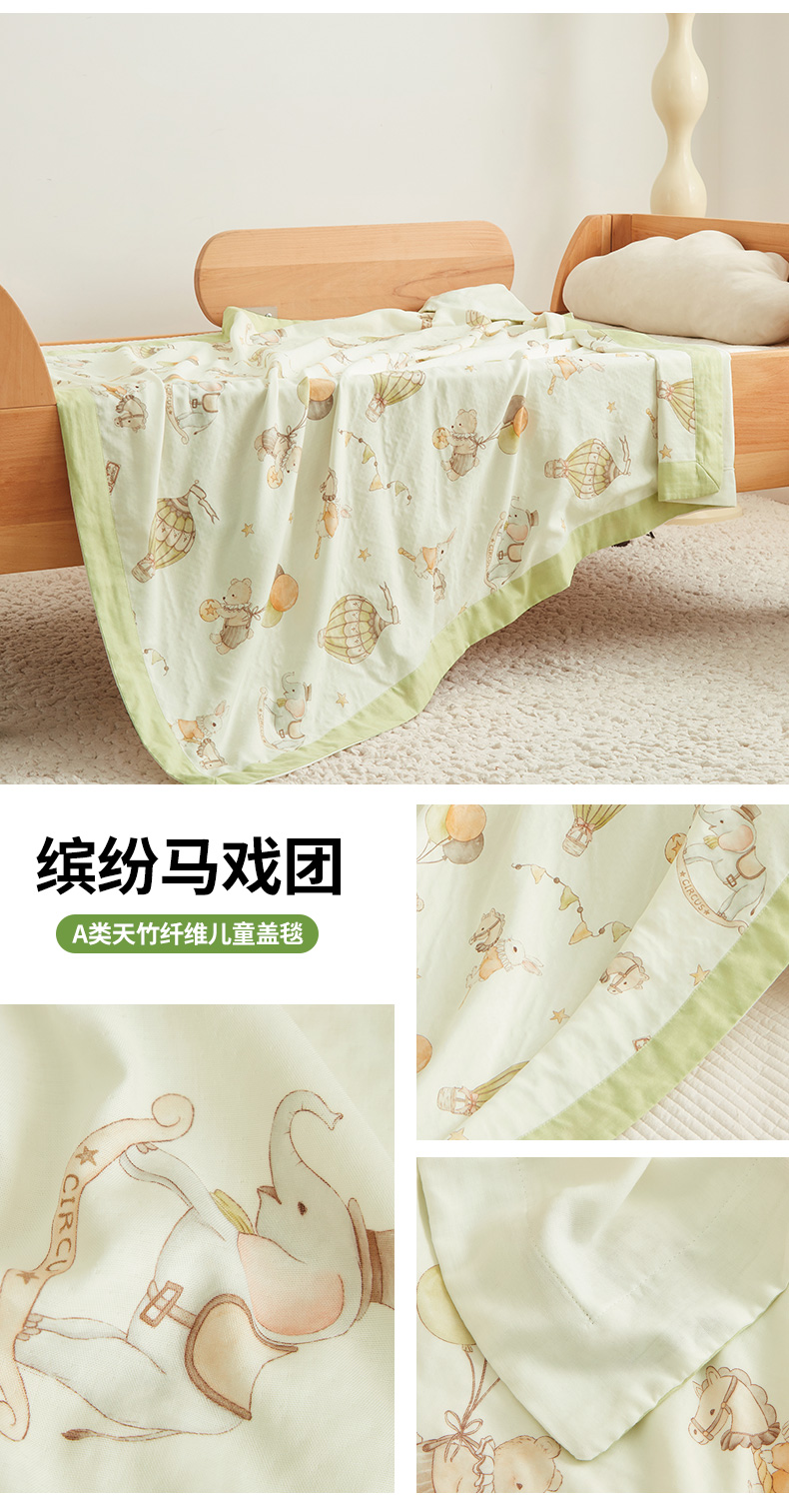 商品名称:嗨生活 2025年新品天竹系列A类竹纤维四层纱儿童盖毯 幼儿园夏被夏凉被空调被 缤纷马戏团