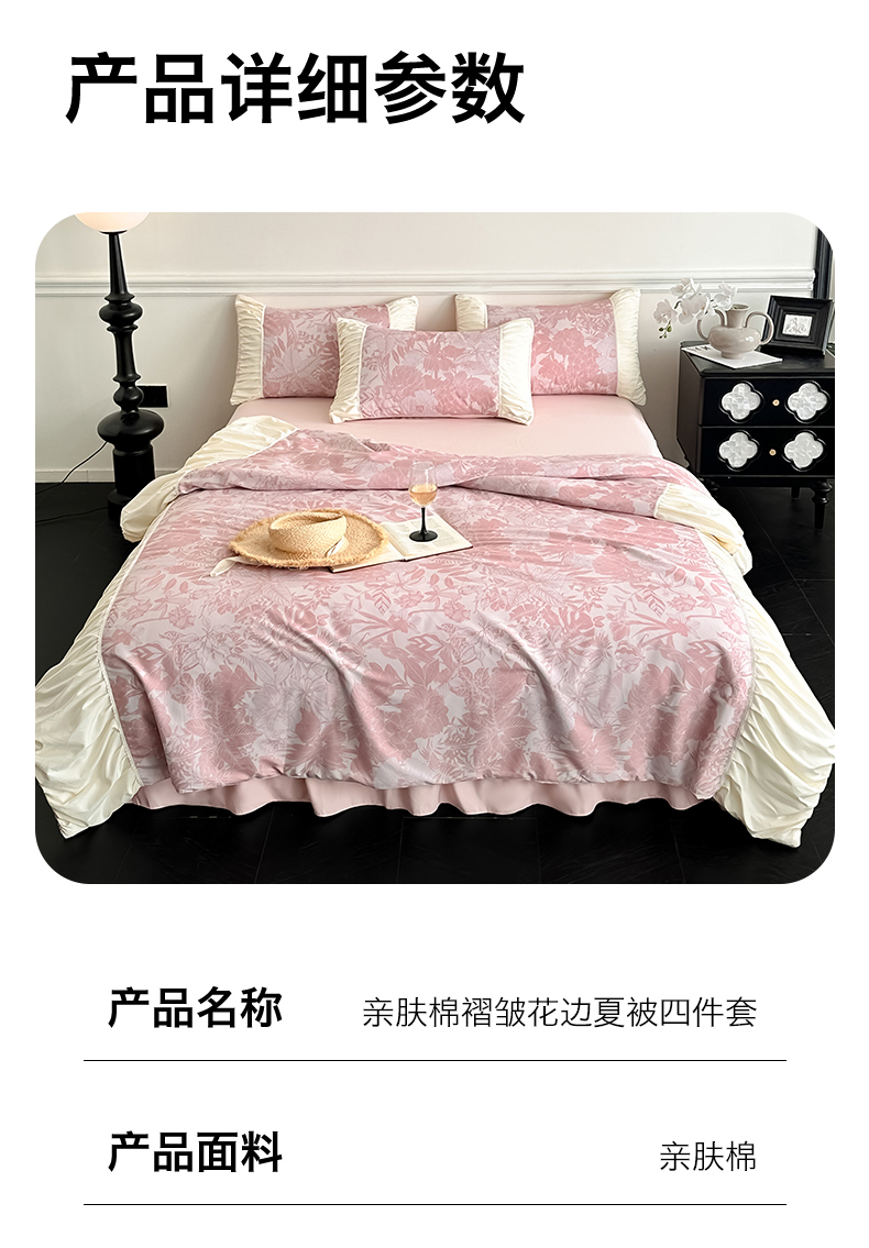 2.2米夏被1.8米床裙四件套(夏被220*240cm,床裙180*200cm(高度40cm)枕套48*74*2) | ¥125.00 |