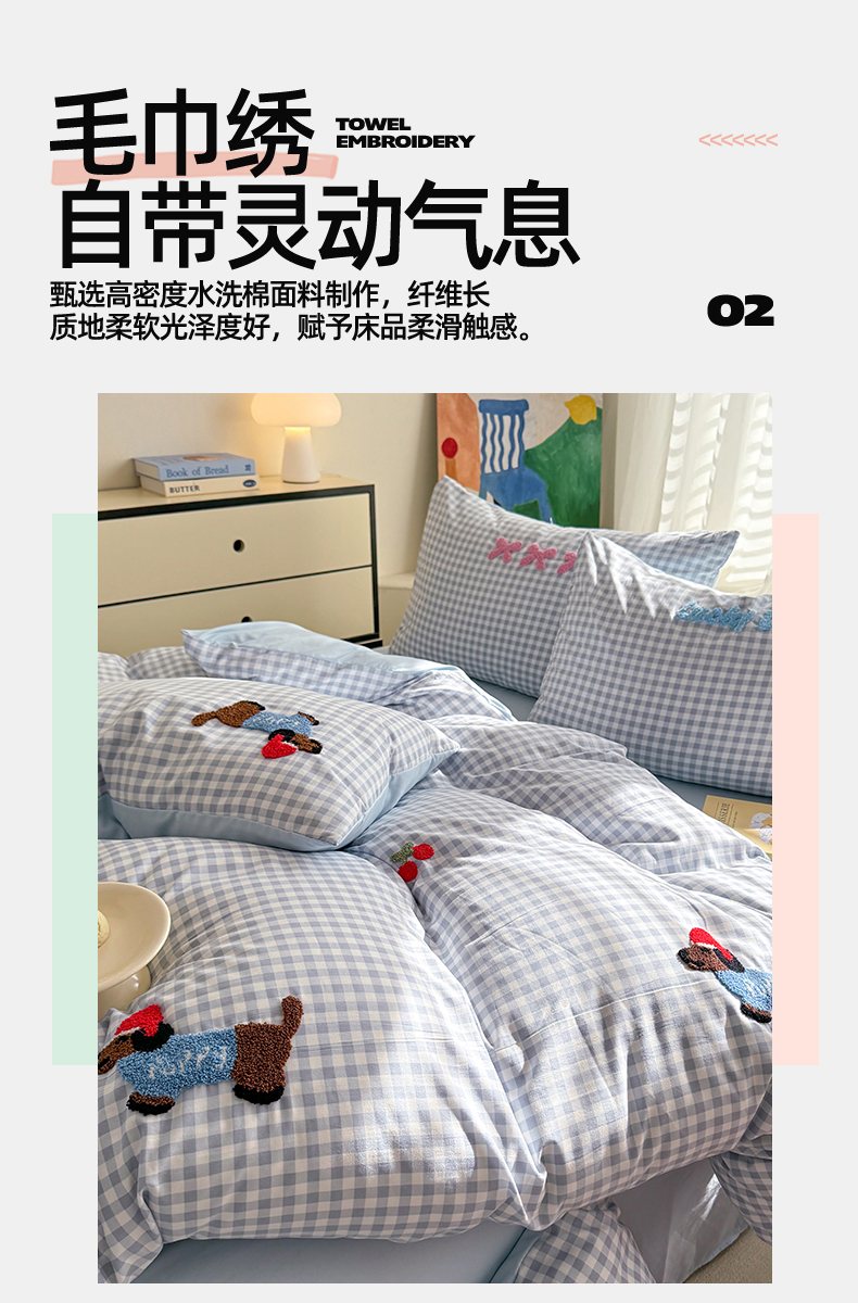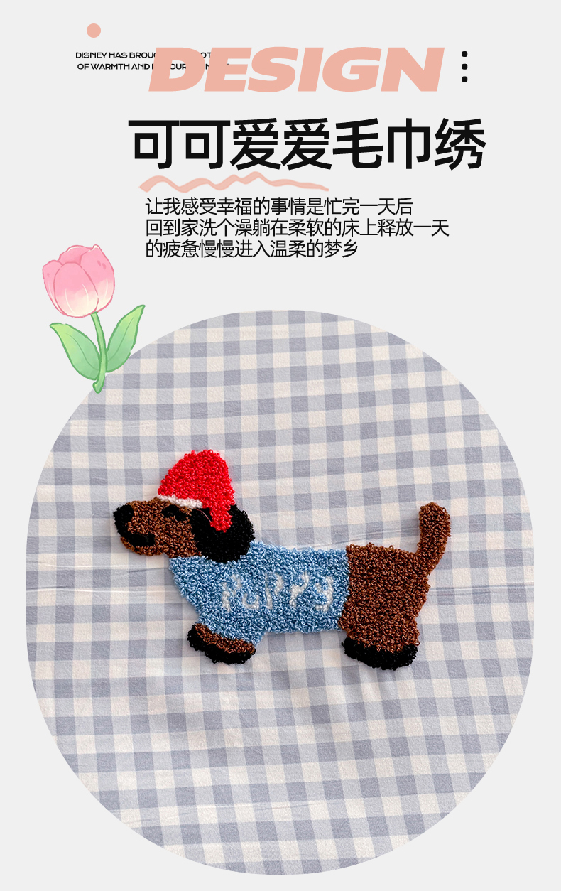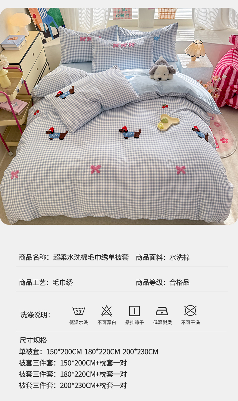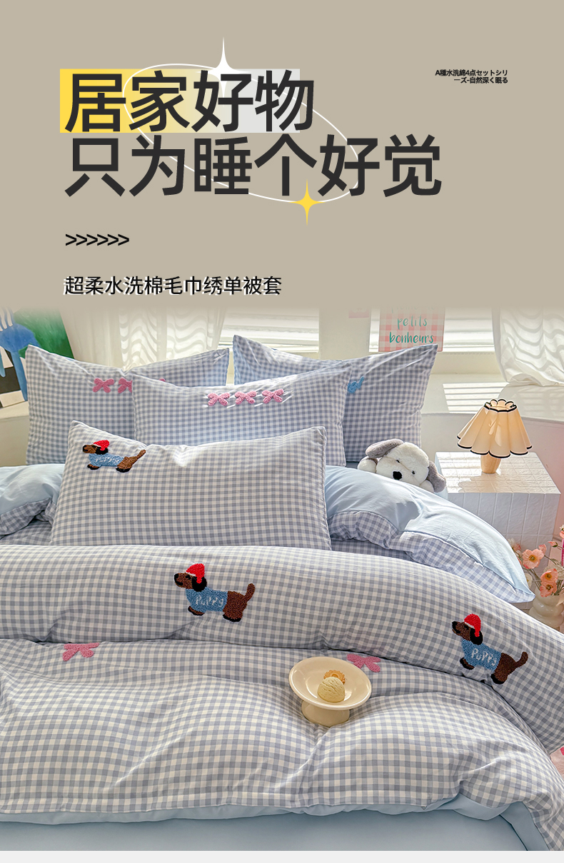• 91家纺网 家纺一手货源 找家纺 多品 2025春夏新款水洗棉毛巾绣卡通系列被套单件-单被套 帽子狗