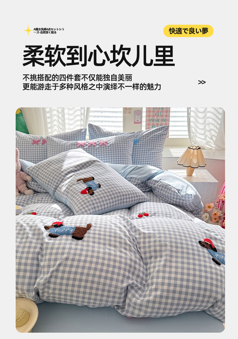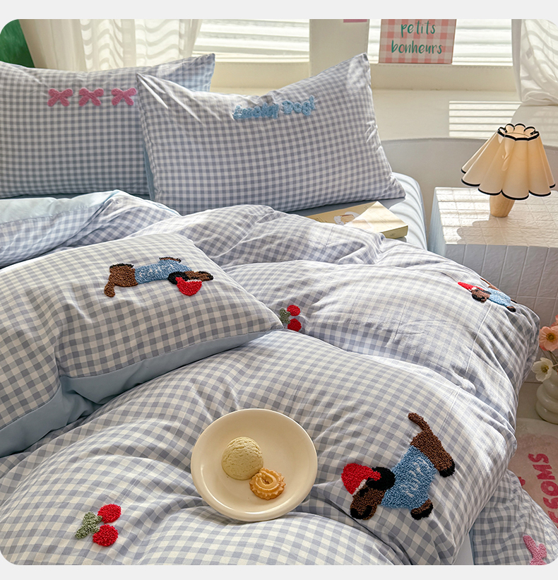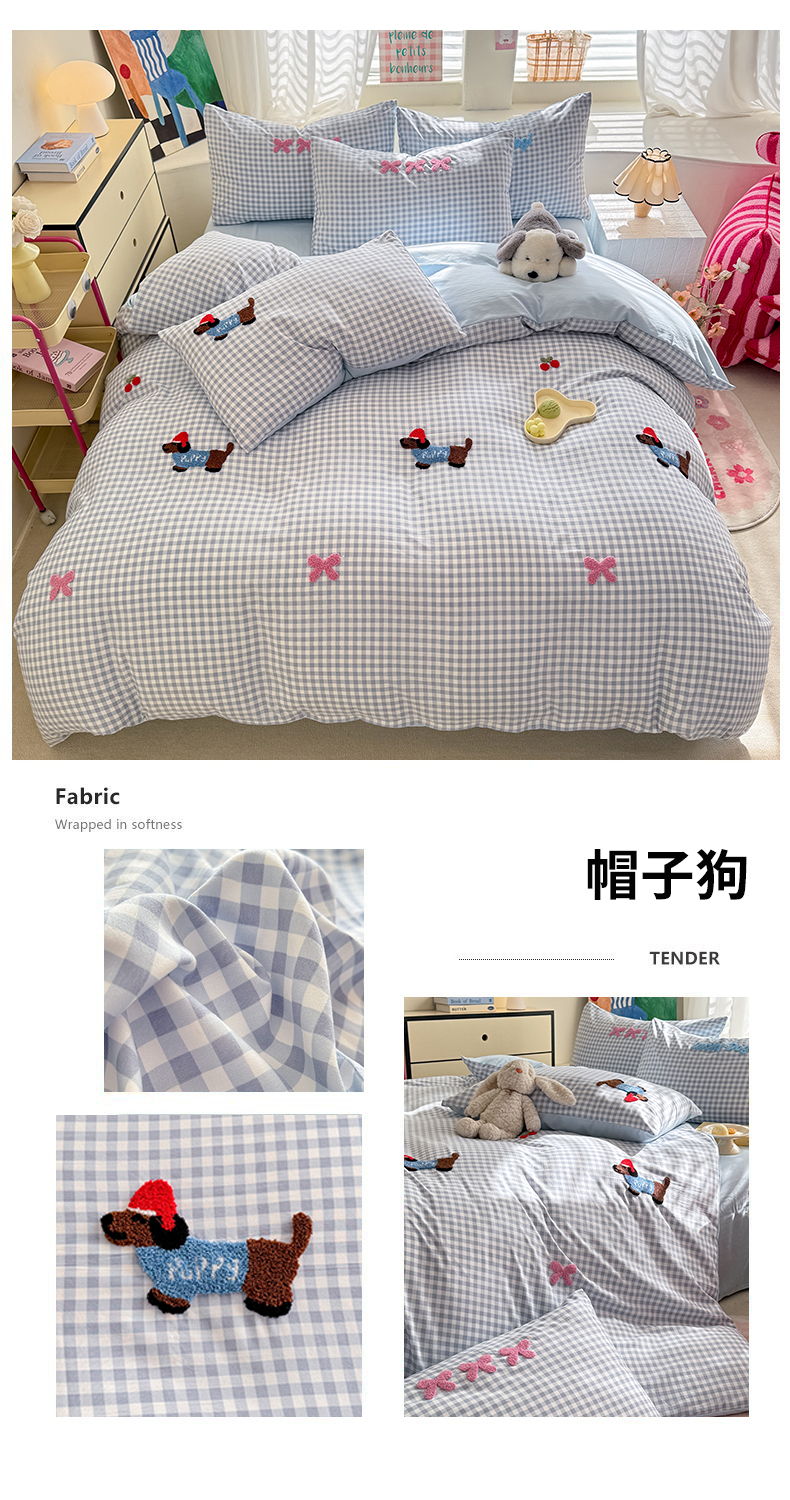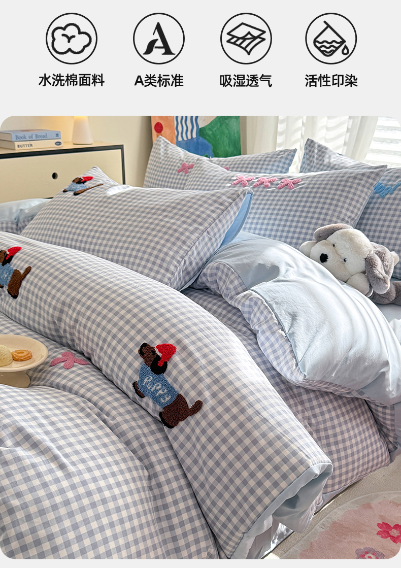 • 91家纺网 家纺一手货源 找家纺 多品 2025春夏新款水洗棉毛巾绣卡通系列被套单件-单被套 帽子狗