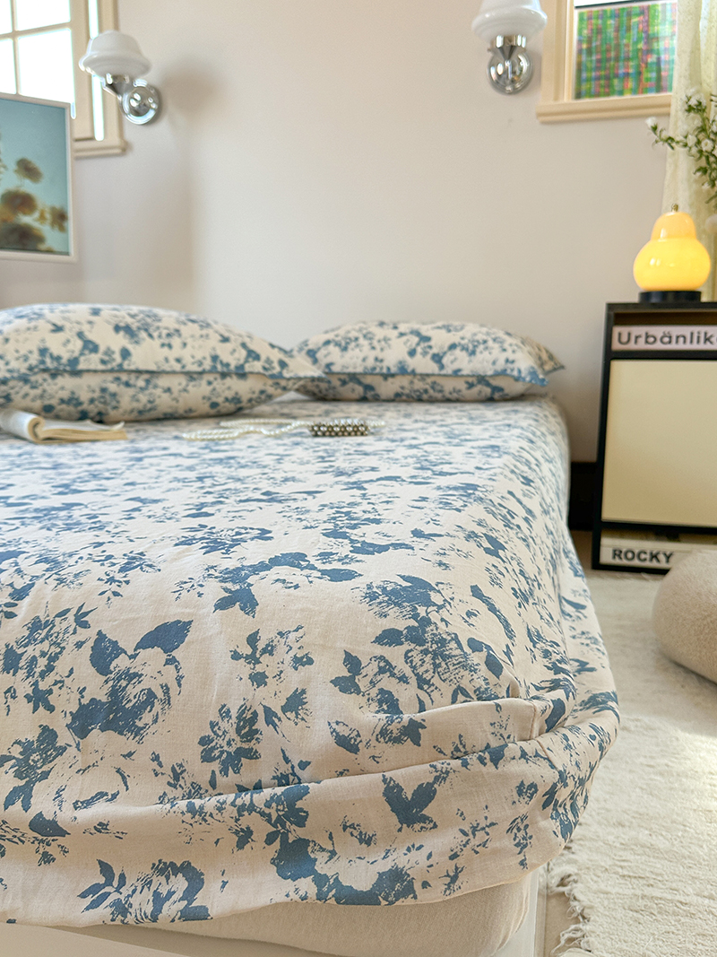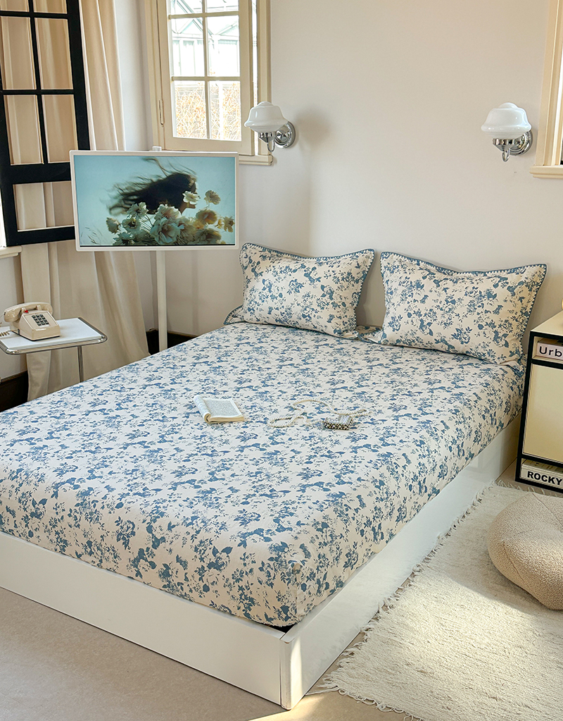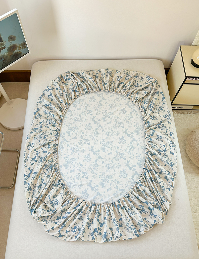 • 91家纺网 家纺一手货源 找家纺 金丝鸟 2025春夏新款全棉纯棉双层纱床笠 床笠单件 青瓷花弄