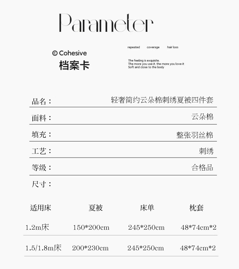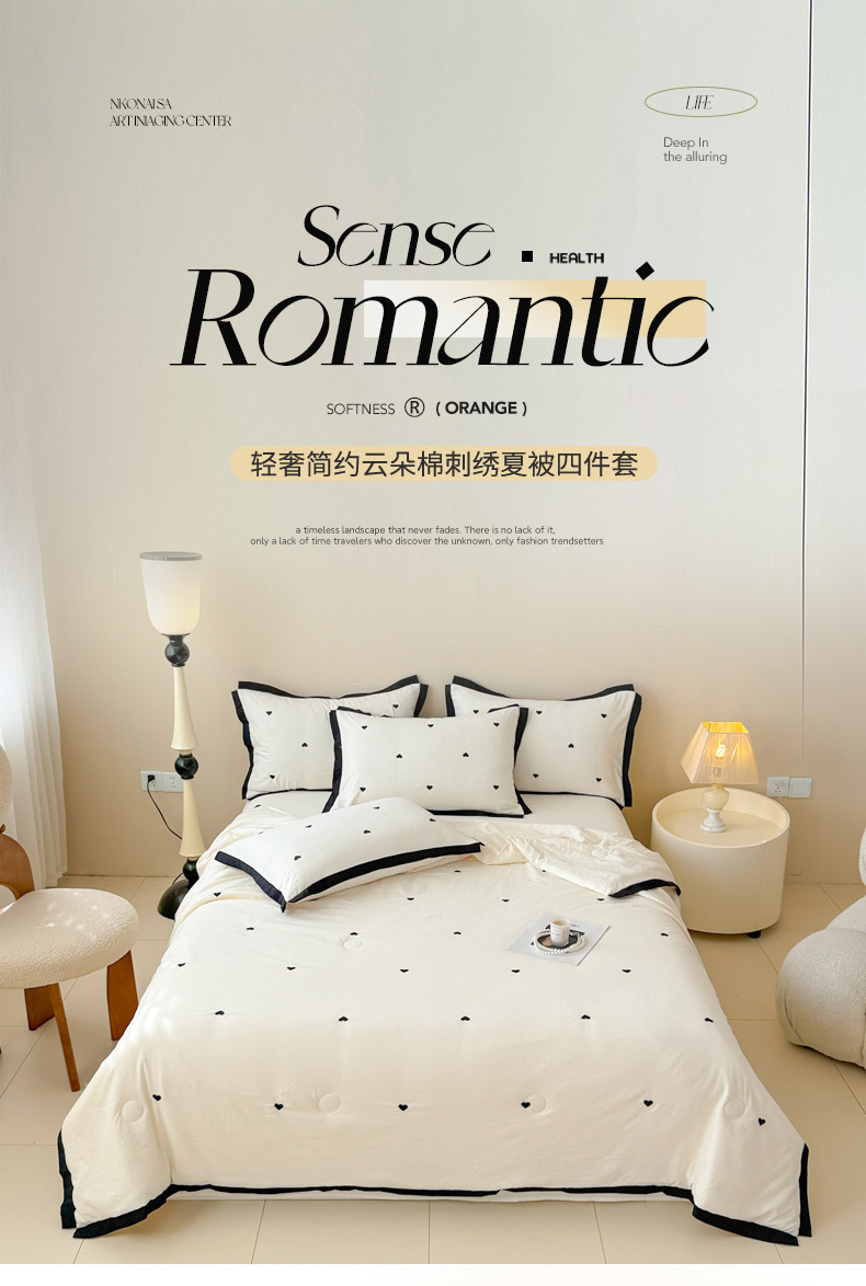 商品名称:米可 2025新款A类刺绣云朵棉夏被四件套 樱桃-白