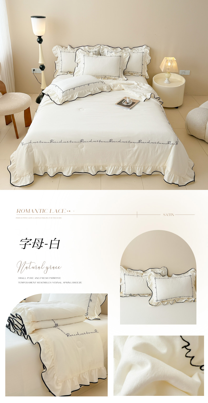 (总)米可 2025新款水洗棉蕾丝花边绣花工艺款四件套,玫瑰仙子-浅粉,玫瑰仙子-白粉,玫瑰仙子-白黑,玫瑰仙子-浅绿