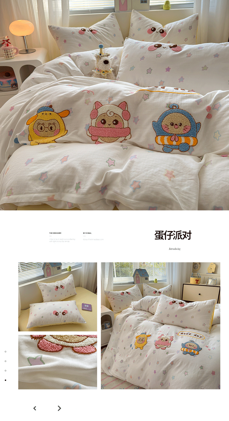 商品名称:如意朵 2025新款全棉双层纱小清新绣花四件套(专版花型) 蛋仔派对