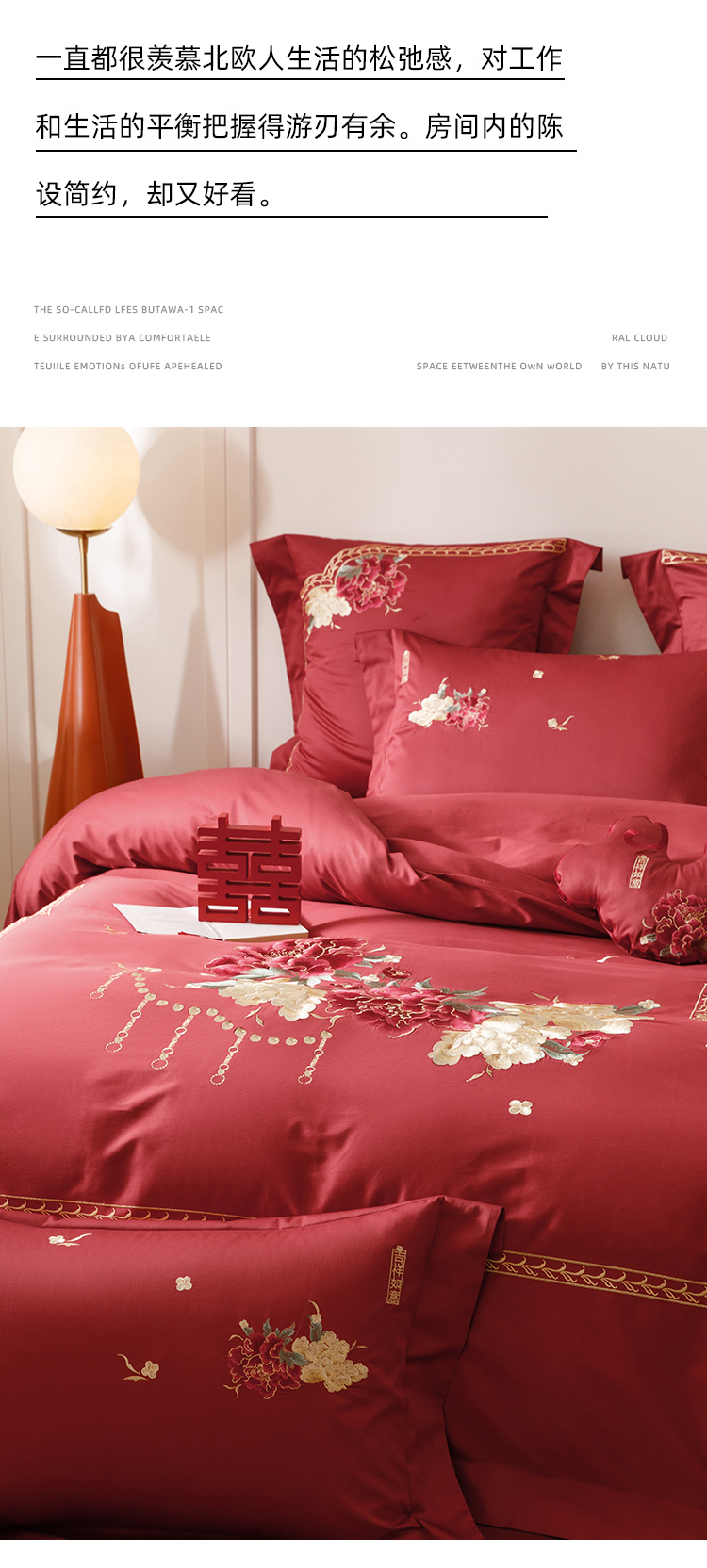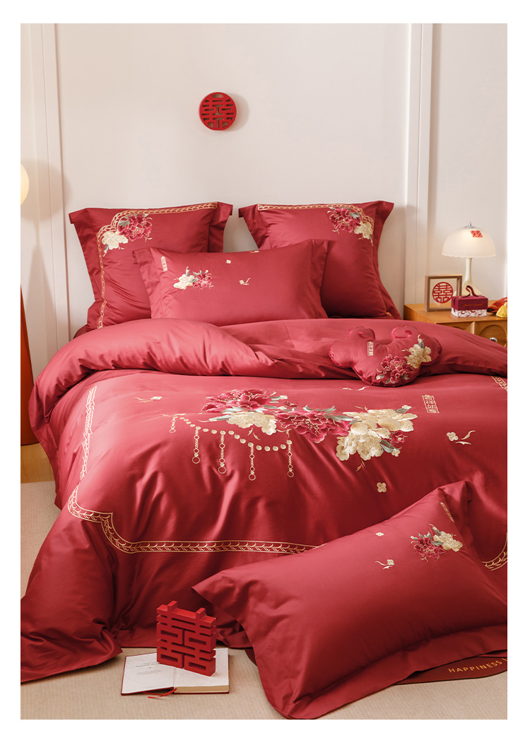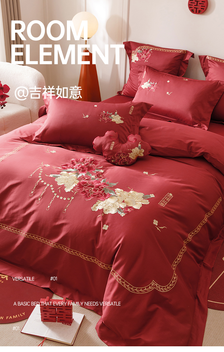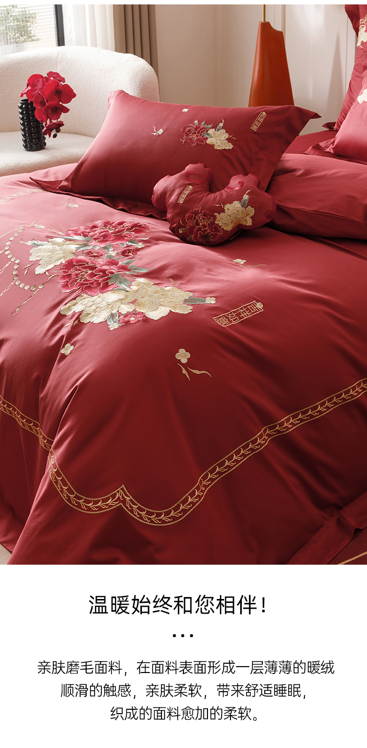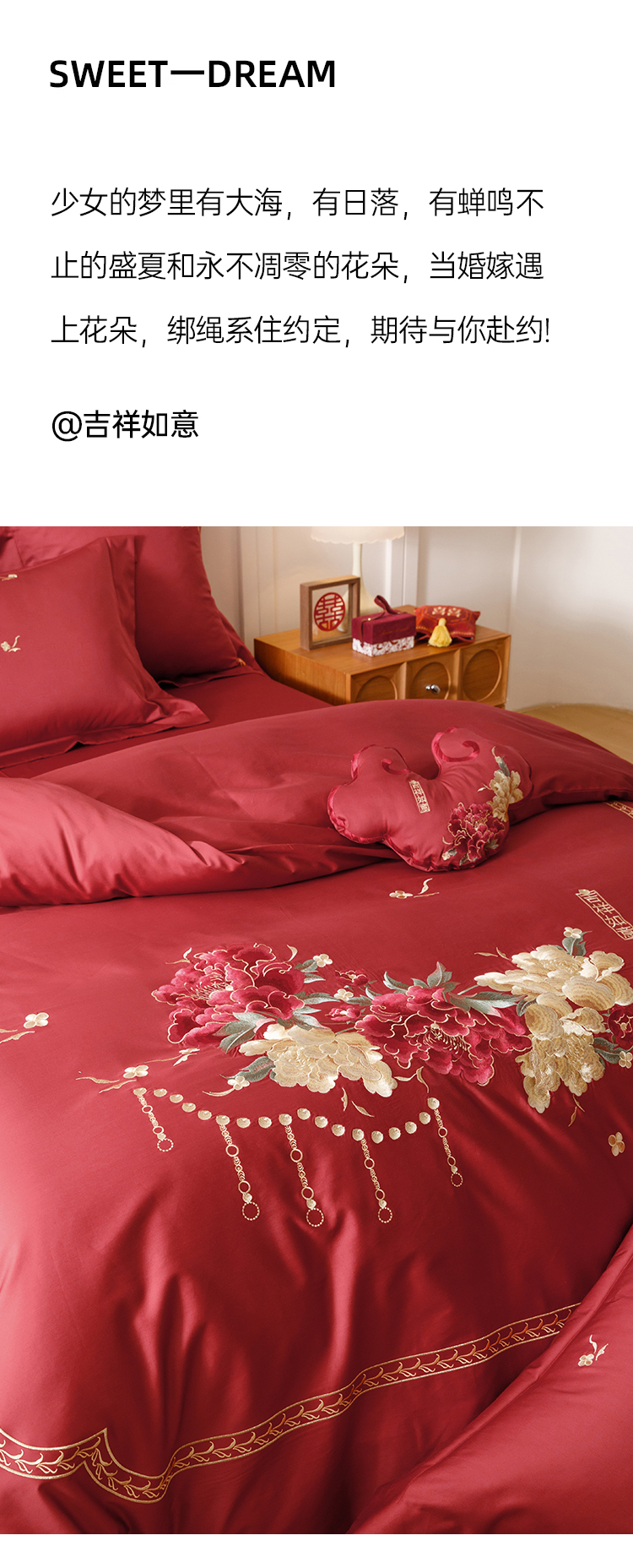 商品名称:2025新款婚庆四件套亲肤棉刺绣磨毛婚庆四件套 吉祥如意