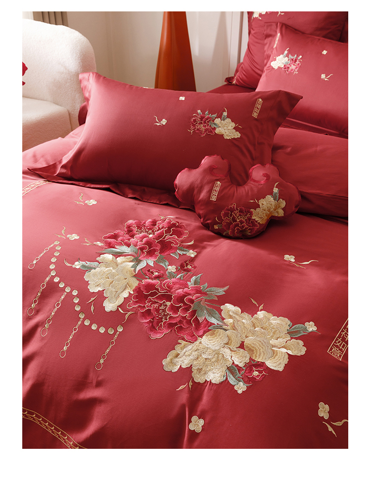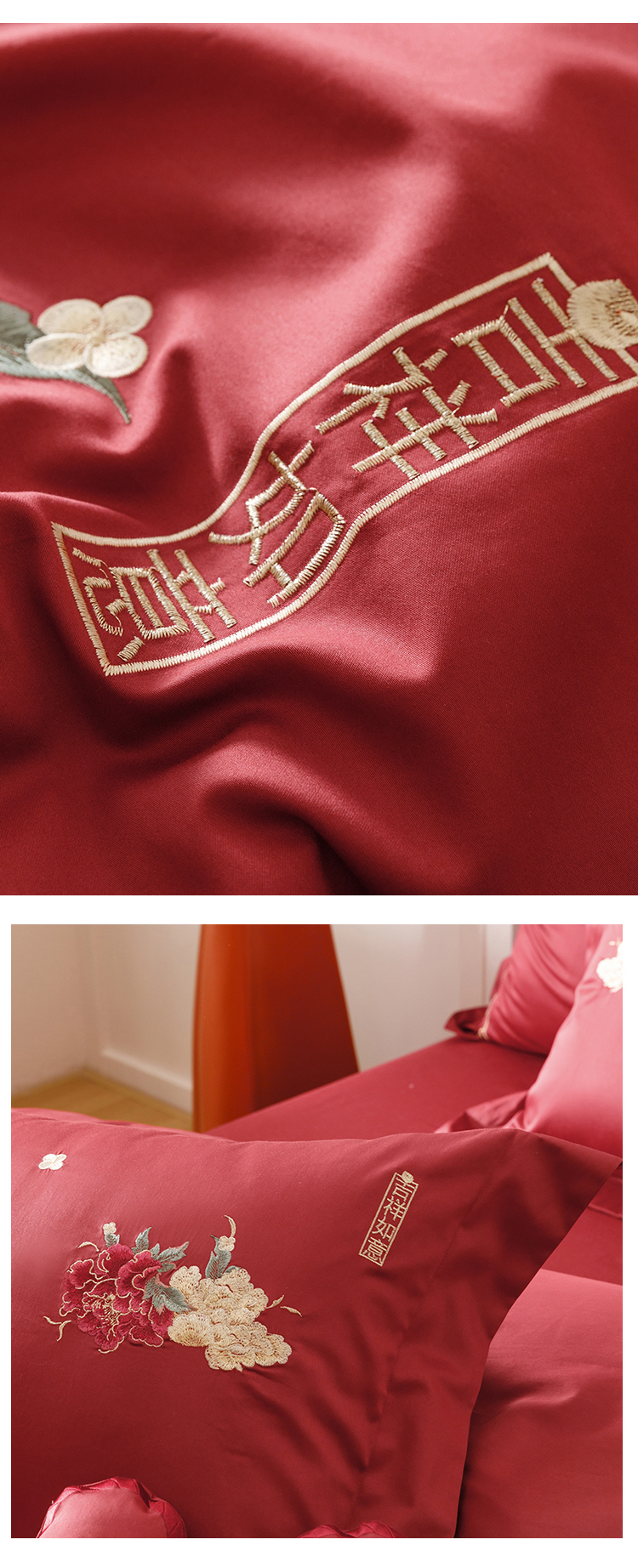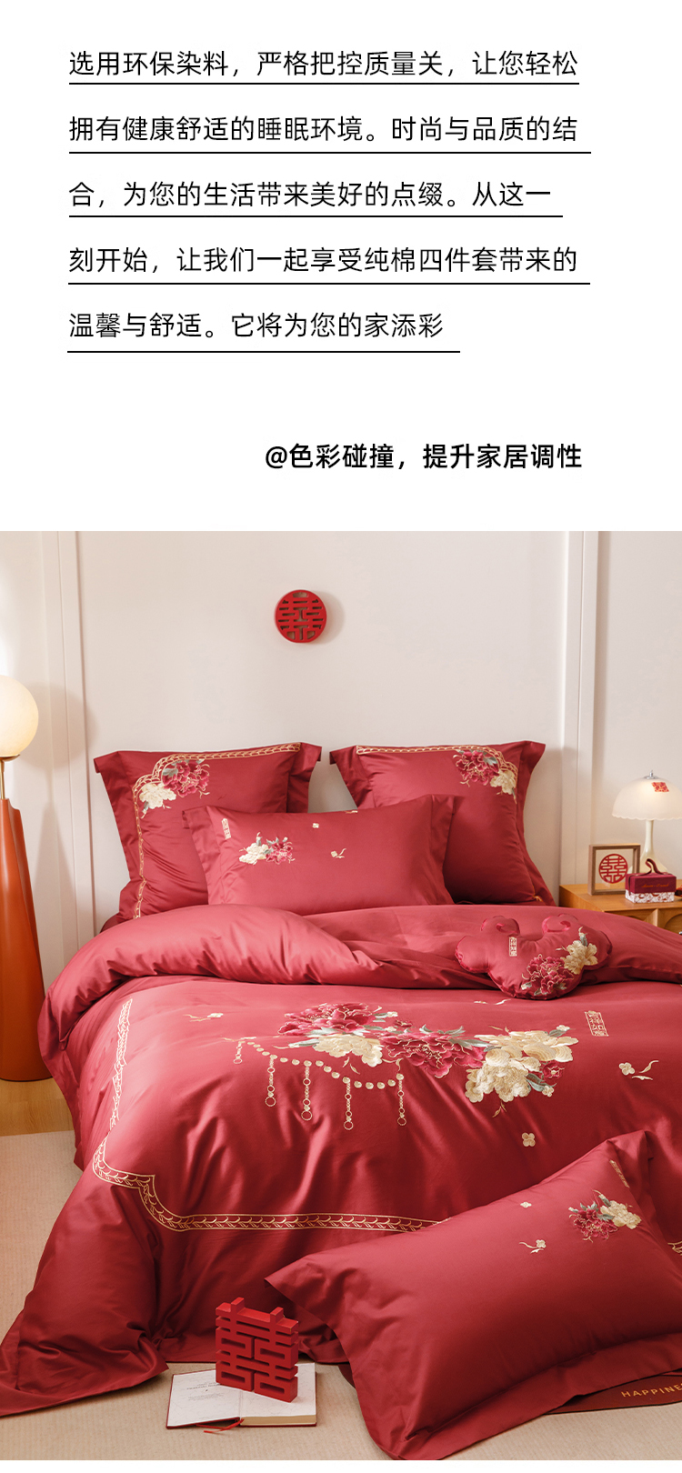 (总)金喜 2025新款婚庆刺绣四件套,百年好合-红,百年好合-金,情意绵绵