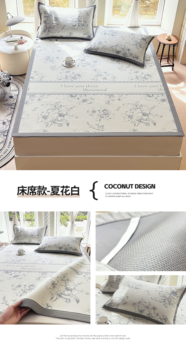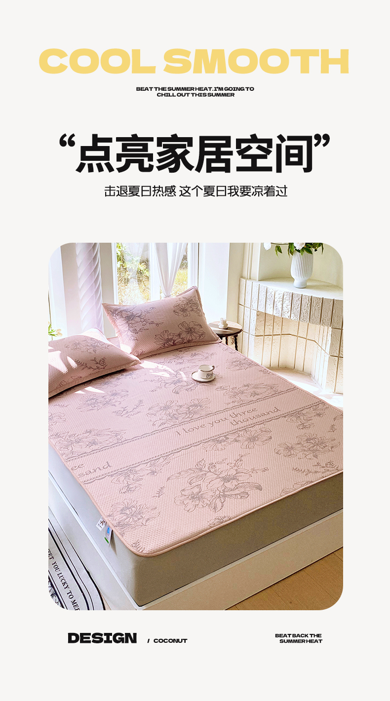 商品名称:宜家坊 2025新款A类PE中分子提花软凉席-花夏 床笠款-夏花粉