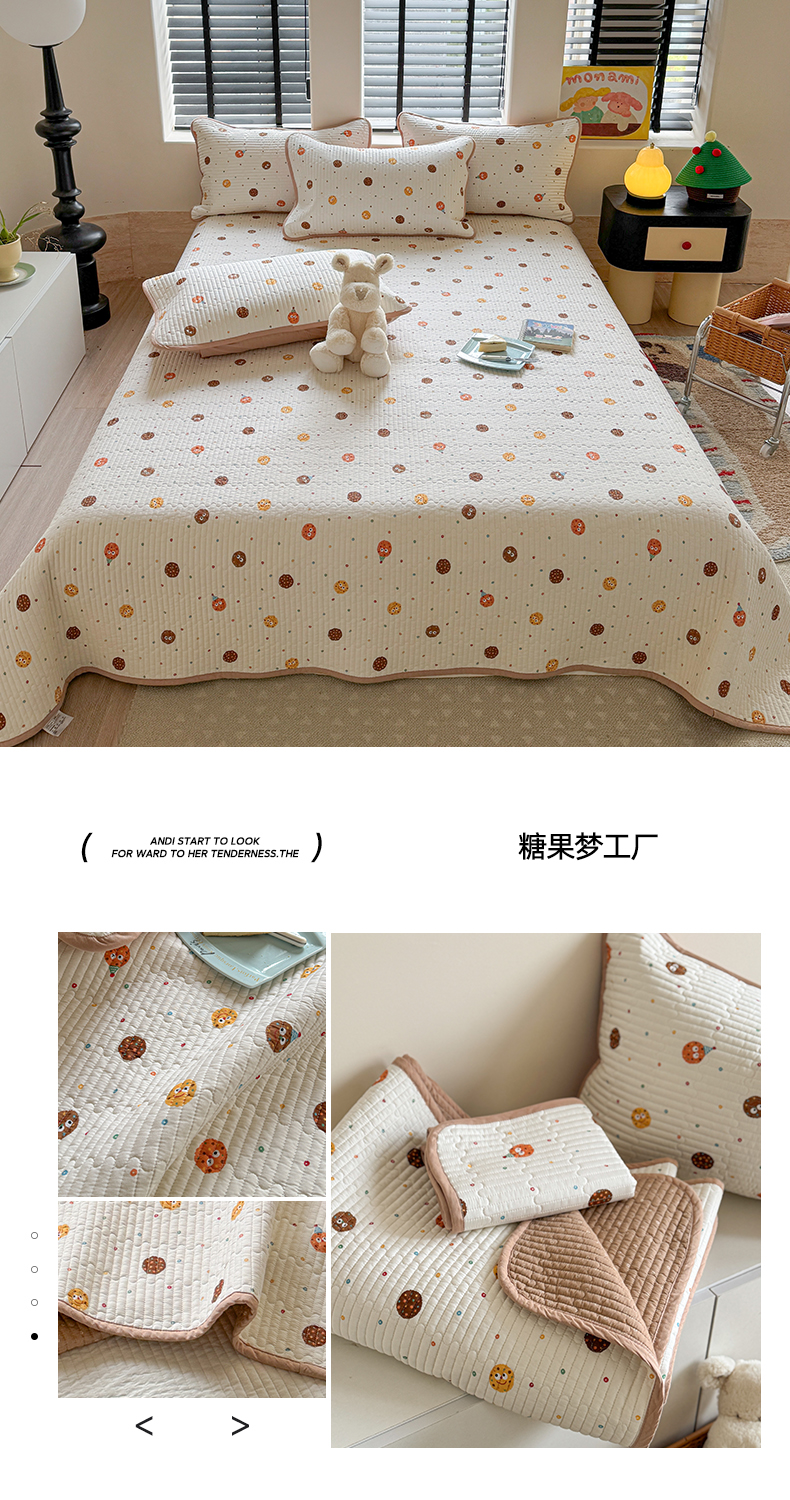 茉夕家纺 2025新款里外全棉夹棉床盖系列 糖果梦工厂