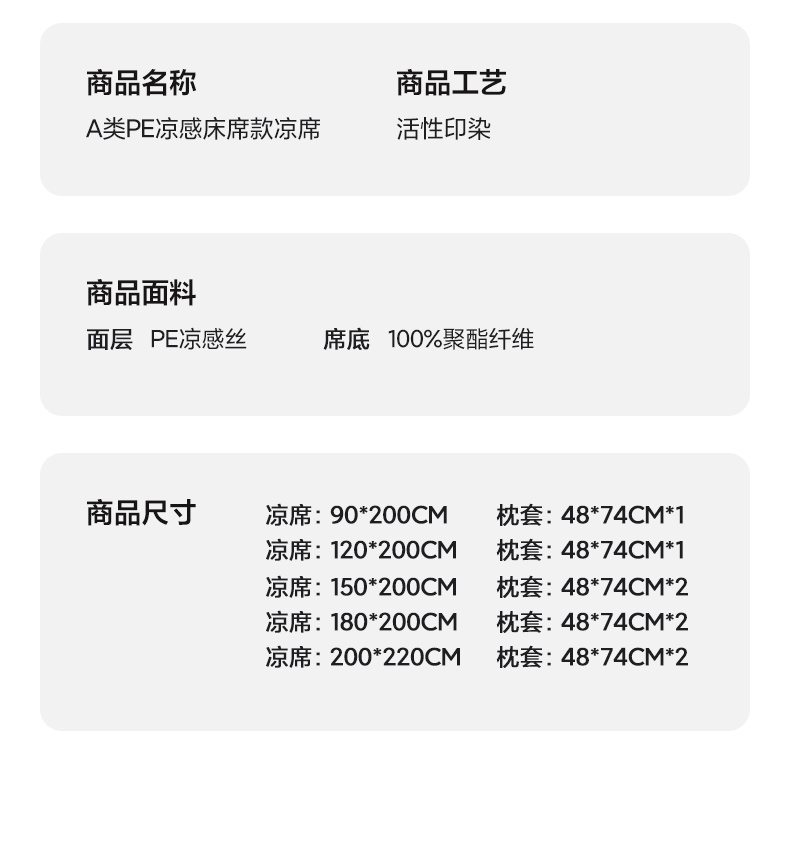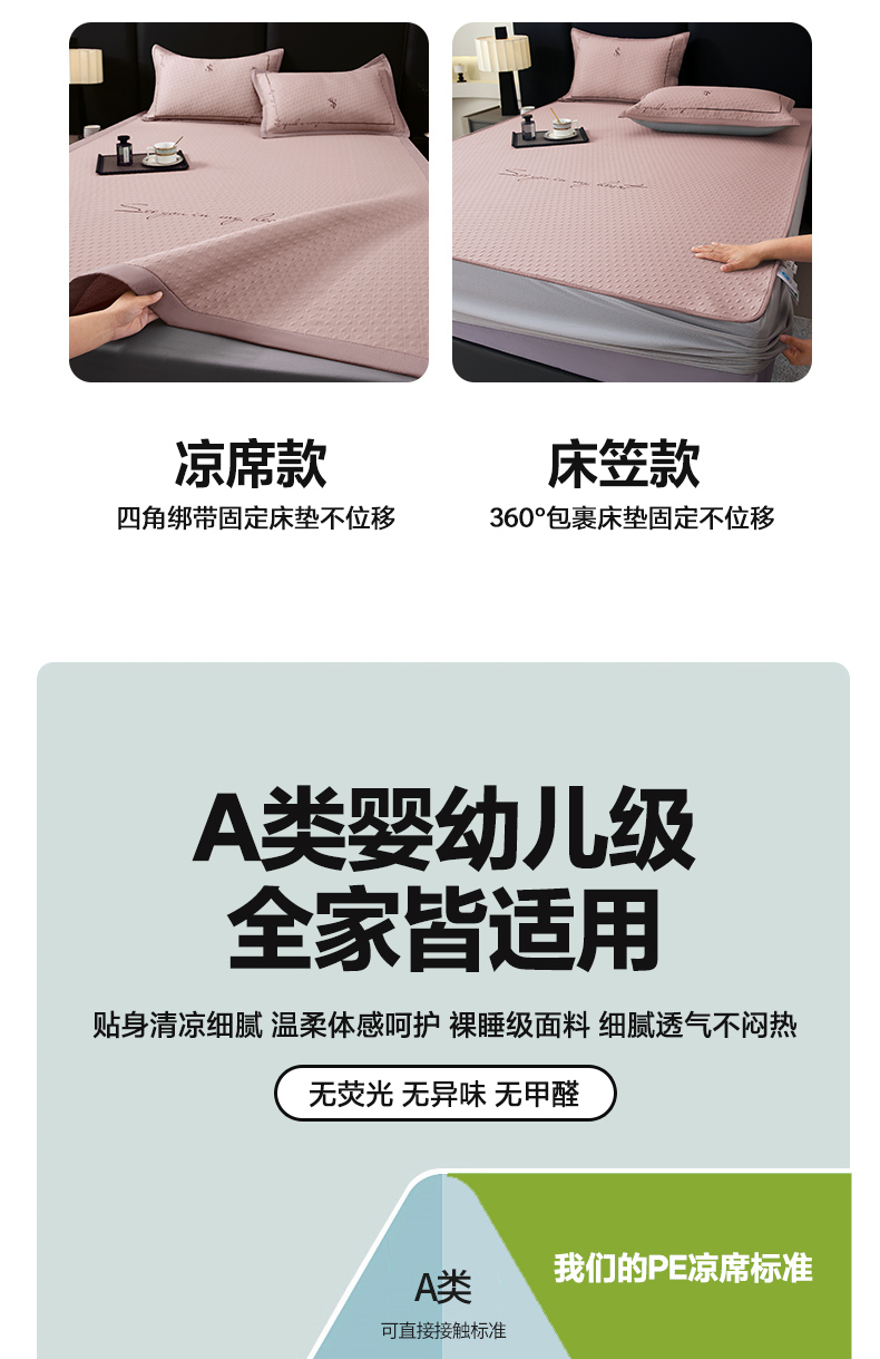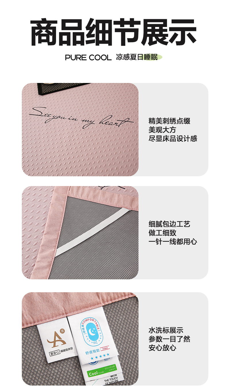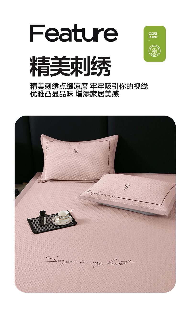 商品名称:(总)宜家坊 2025新款A类PE中分子绣花软凉席-雅致