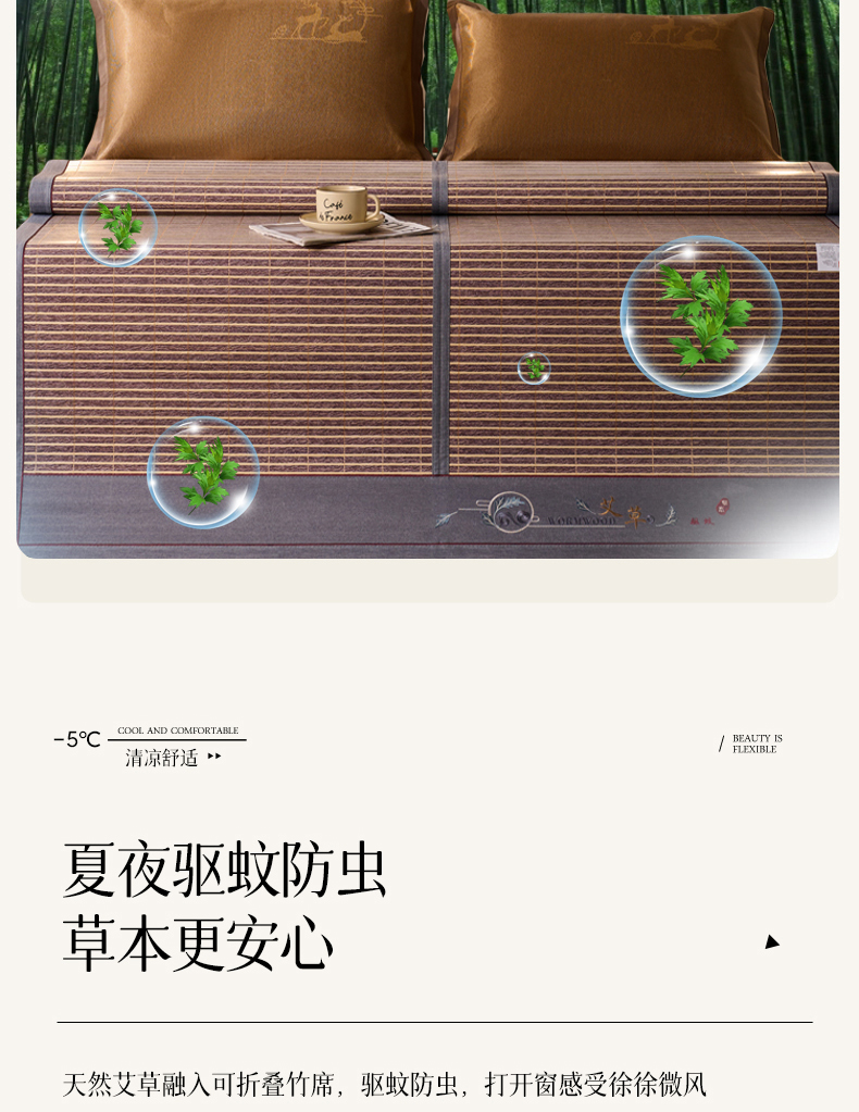 当前位置: 91家纺网 > 商品网购 > 床上用品 > 凉席 > 鑫琪莱家纺 2025新款双面竹席冰丝席竹凉席学生宿舍席子 艾草木纹-烟雨-
