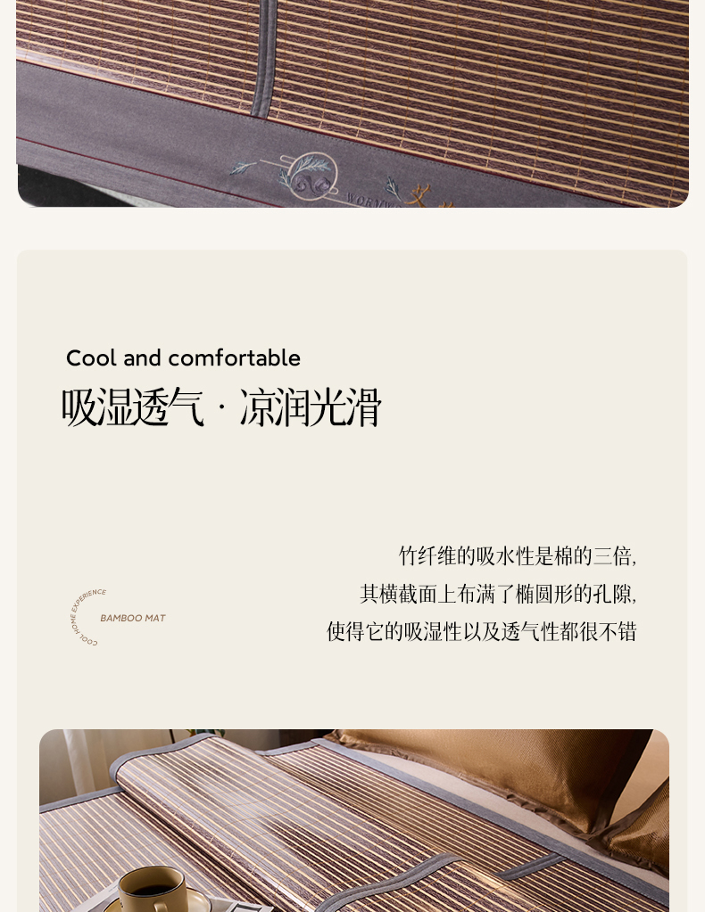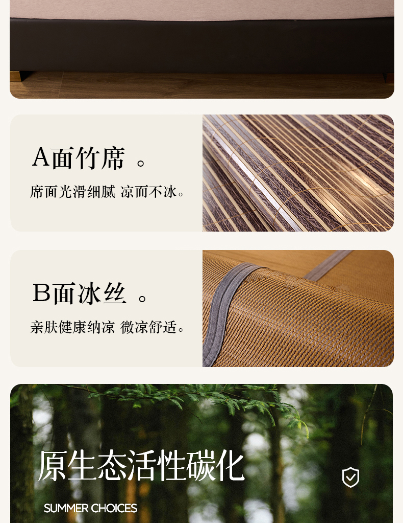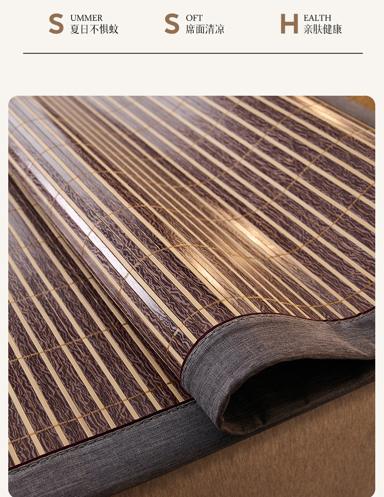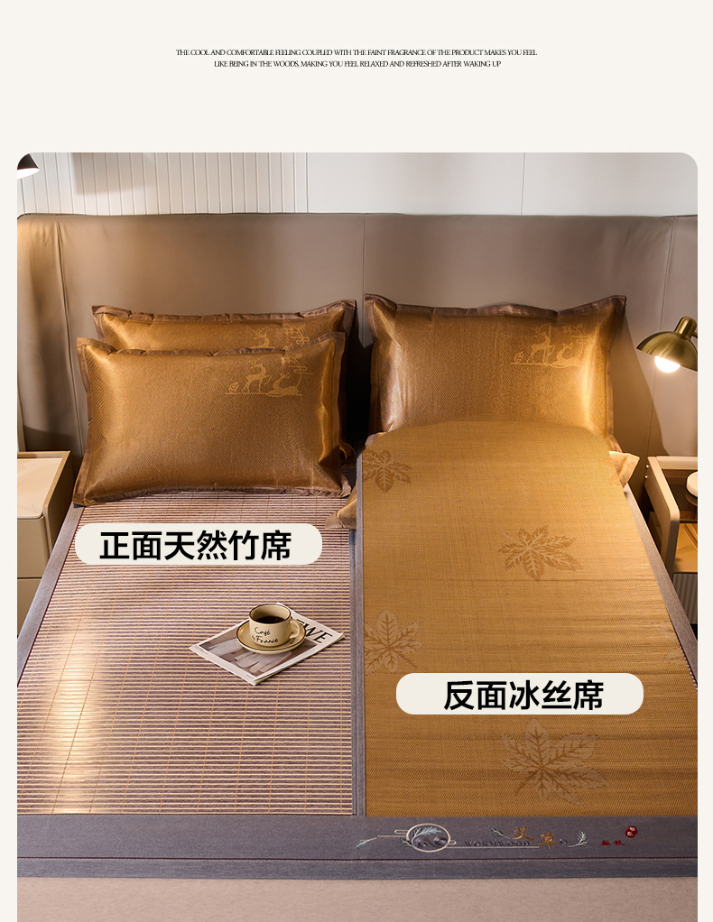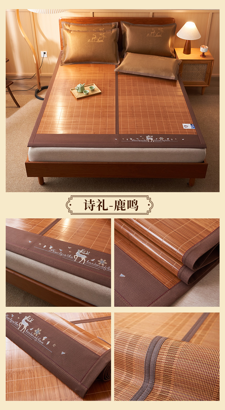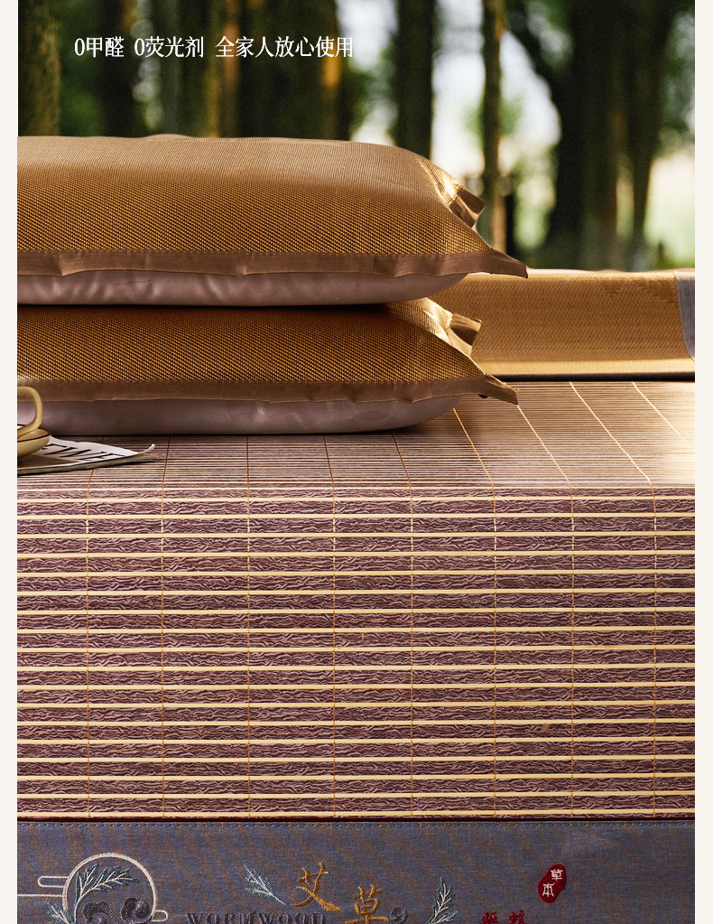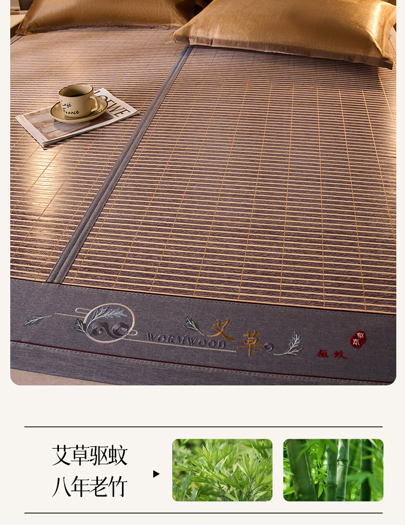 • 91家纺网 家纺一手货源 找家纺 鑫琪莱家纺 2025新款双面竹席冰丝席竹凉席学生宿舍席子 艾草木纹-烟雨-