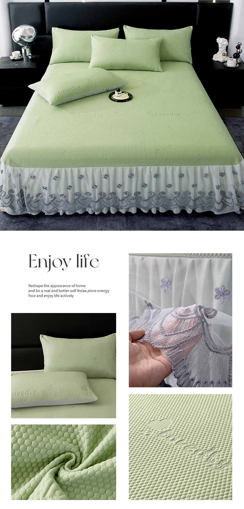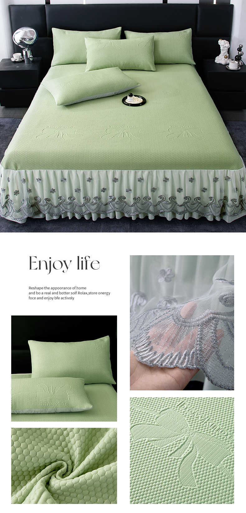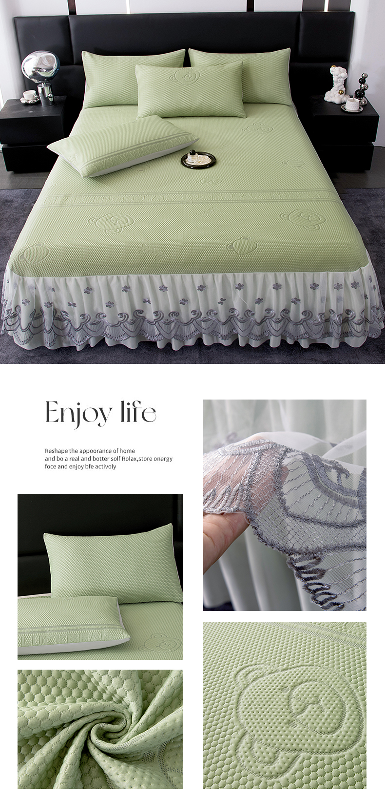 (总)2025新款A类凉感豆豆凉席系列床裙款