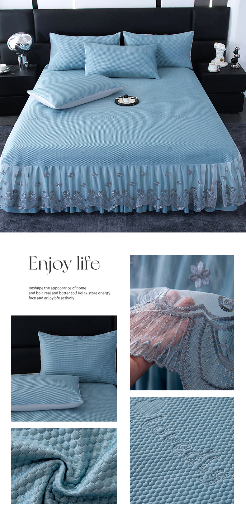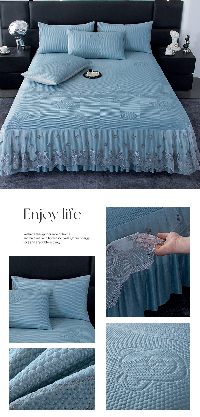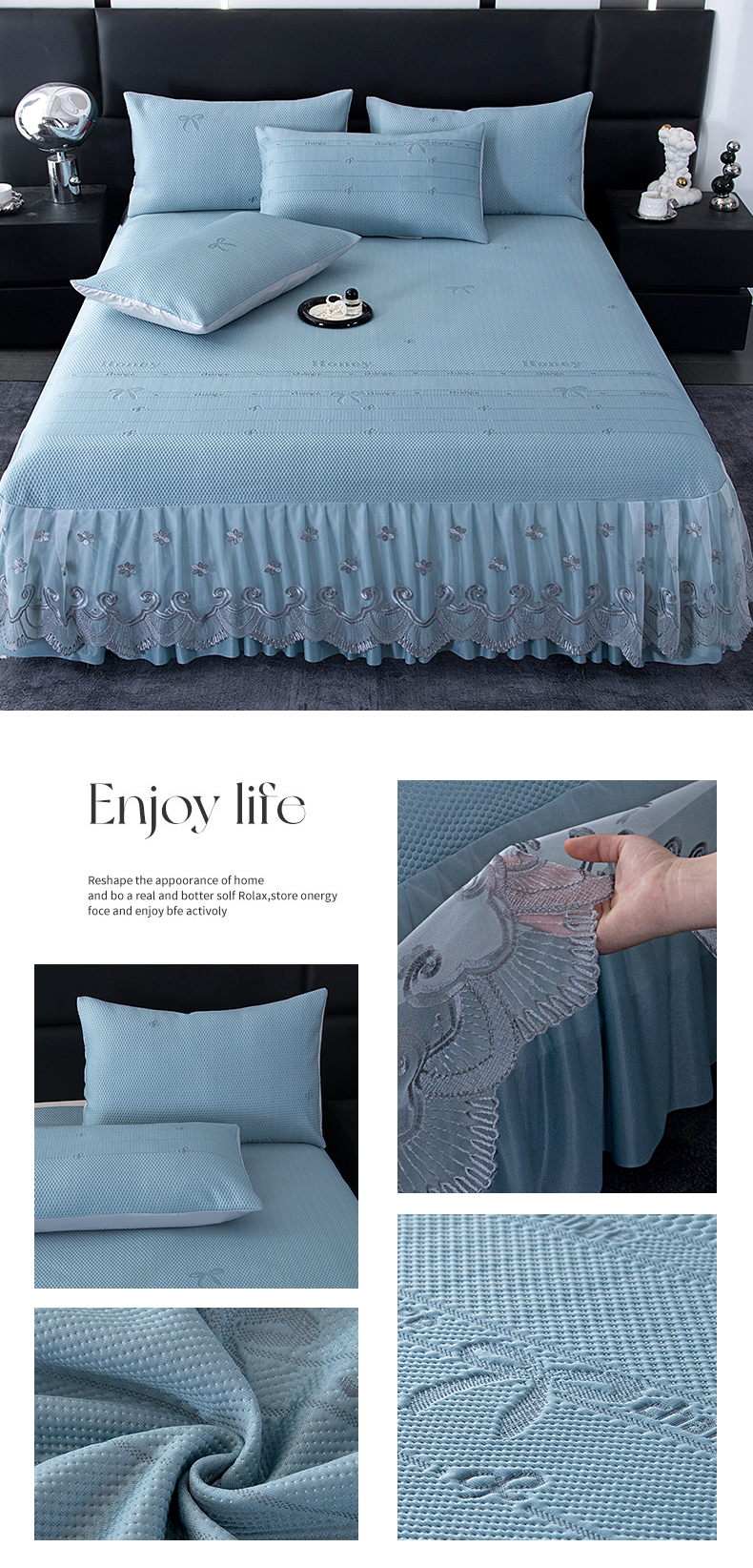 (总)2025新款A类凉感豆豆凉席系列床裙款