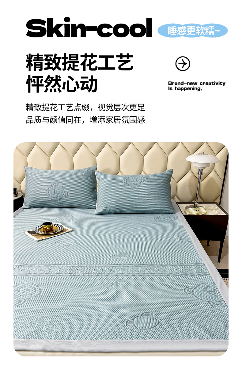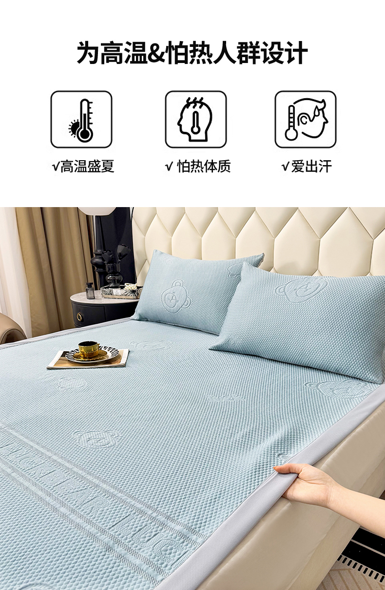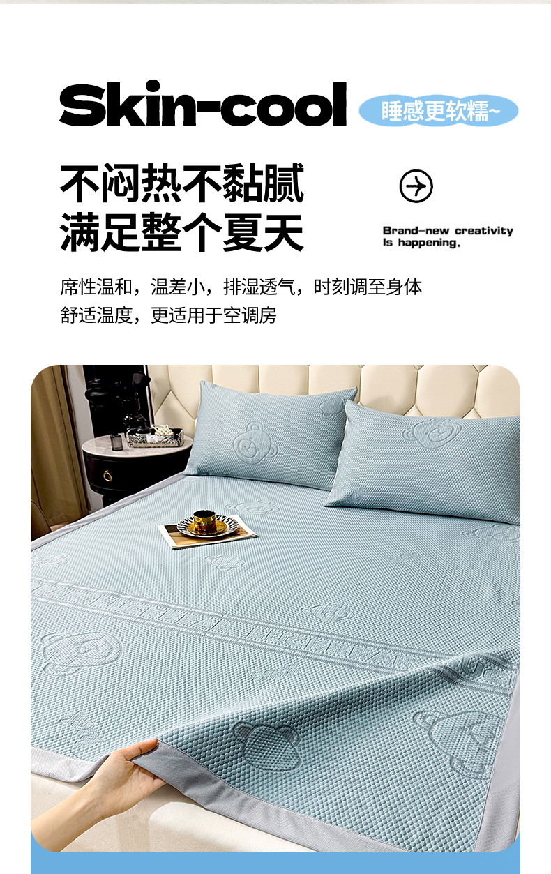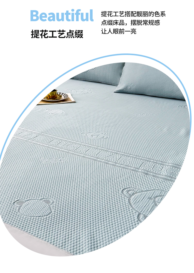 商品名称:席皇后 2025新款亲肤简约纯色豆豆床裙款凉席 熊-蓝