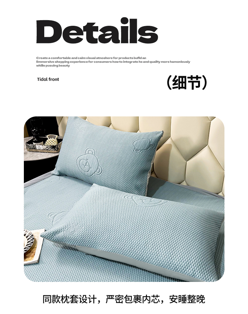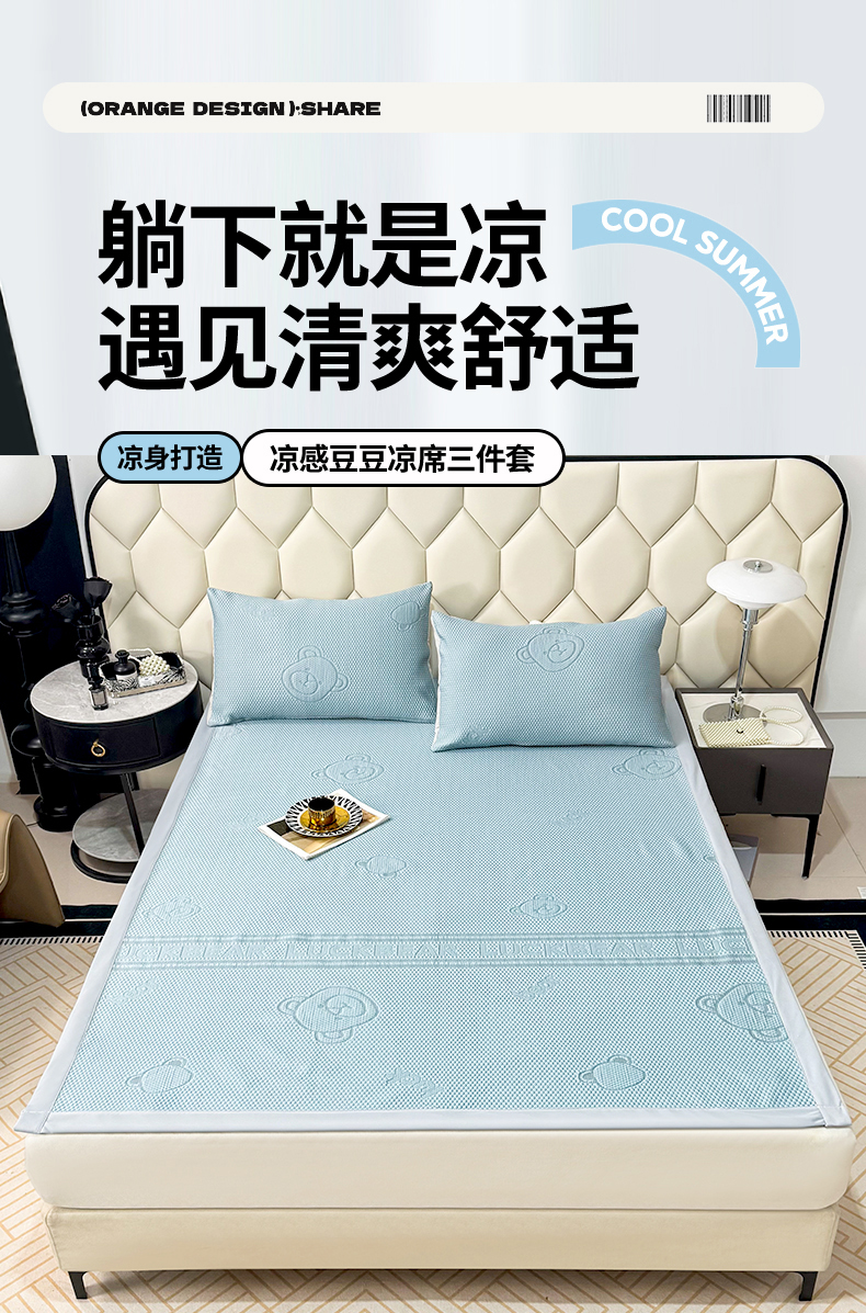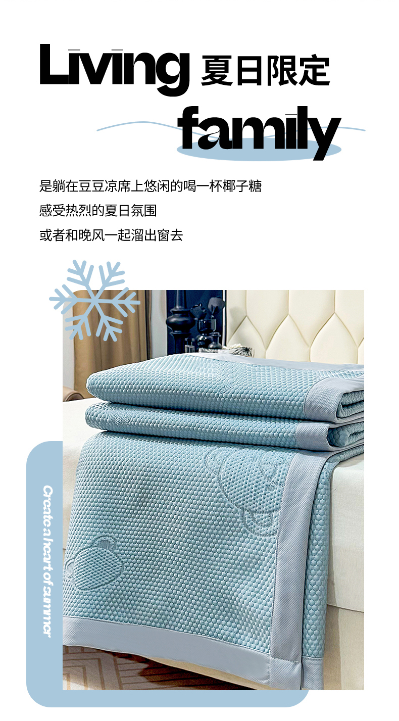 商品名称:席皇后 2025新款亲肤简约纯色豆豆床裙款凉席 熊-蓝